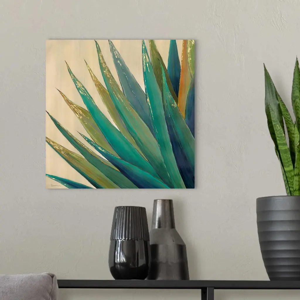 Contemporary home decor artwork of an agave plant against a neutral background.