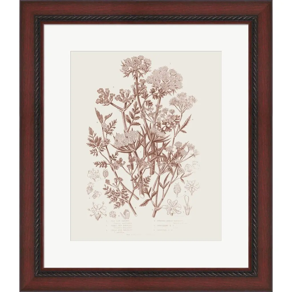 Flowering Plants IV Brown by Wild Apple Portfolio is a high quality piece of framed artwork. The finished size of this piece is 21" X 24". It has a Cherry Decorative Accent frame, is single matted and finished with high quality Acrylic Plexiglass. 100% Satisfaction Guaranteed.