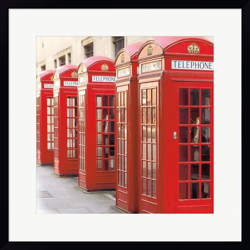 London Phoneboxes by Wild Apple Portfolio is a high quality piece of framed artwork. The finished size of this piece is 22" X 22". It has a Petite Black with Flat Front frame, is single matted and finished with high quality Acrylic Plexiglass. 100% Satisfaction Guaranteed.
