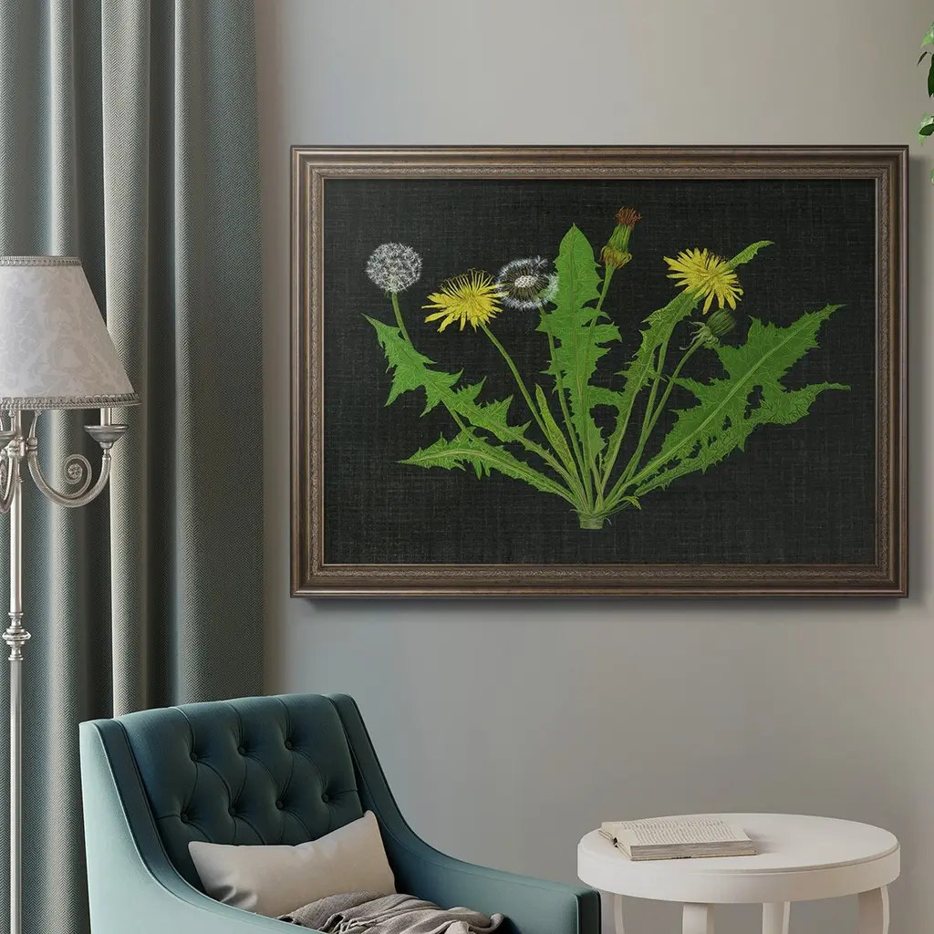 Wild Dandelion I Premium Framed Canvas- Ready to Hang A Premium Framed Canvas created to last. Framed in distressed wood and available in an array of sizes and colors Featuring a beveled a solid wood stretcher bar, each piece comes ready to hand 3 SIZES AVAILABLE 16''X20'' - Overall Size 18'X27'' - Overall Size 24''x36'' - Overall Size Each piece is made to order. Each piece comes with hanging hardware. Made in the USA Ready to Hang Giclee Paper Print Acrylic Glass Beveled Matt Board