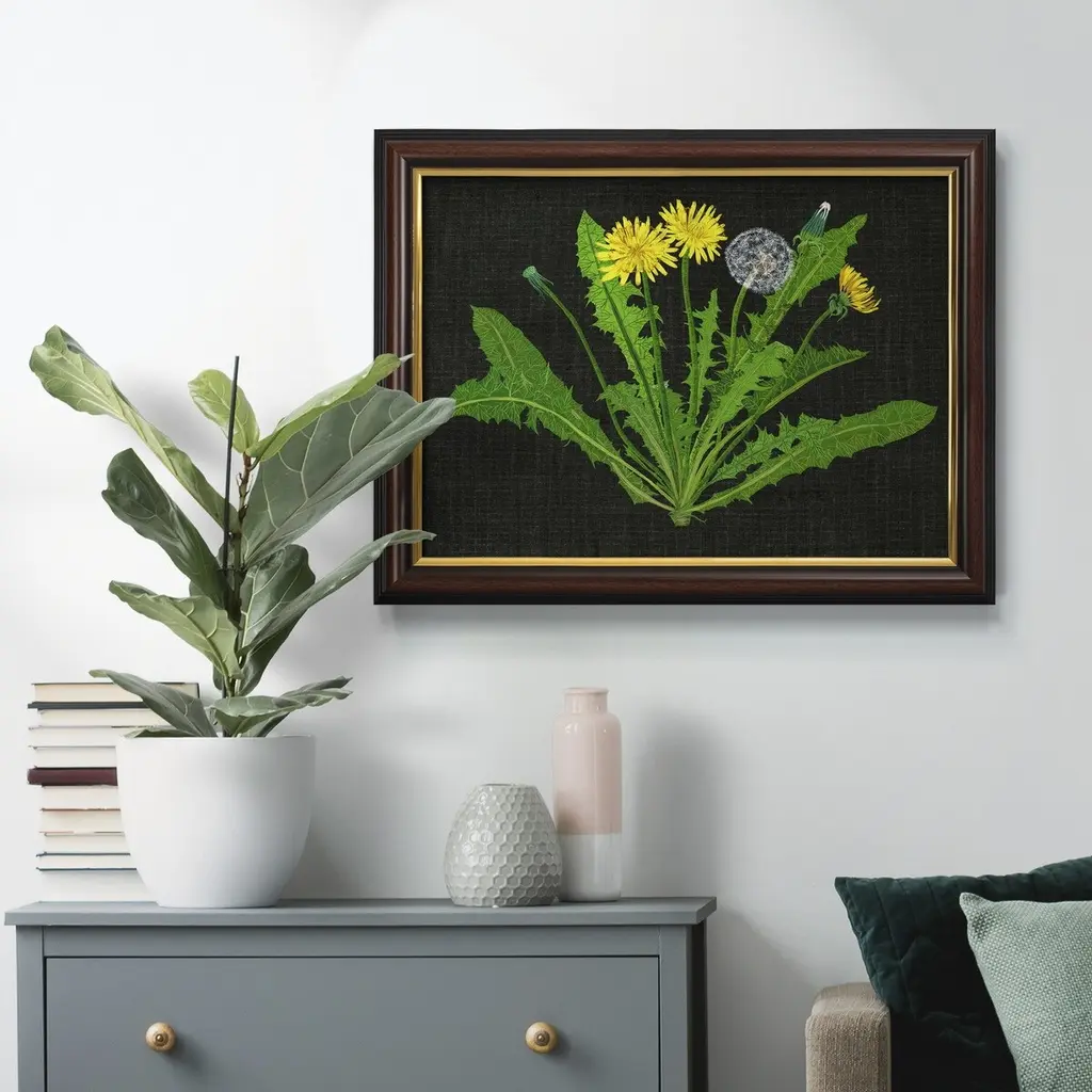 Wild Dandelion II Premium Framed Canvas- Ready to Hang A Premium Framed Canvas created to last. Framed in distressed wood and available in an array of sizes and colors Featuring a beveled a solid wood stretcher bar, each piece comes ready to hand 3 SIZES AVAILABLE 16''X20'' - Overall Size 18'X27'' - Overall Size 24''x36'' - Overall Size Each piece is made to order. Each piece comes with hanging hardware. Made in the USA Ready to Hang Giclee Paper Print Acrylic Glass Beveled Matt Board