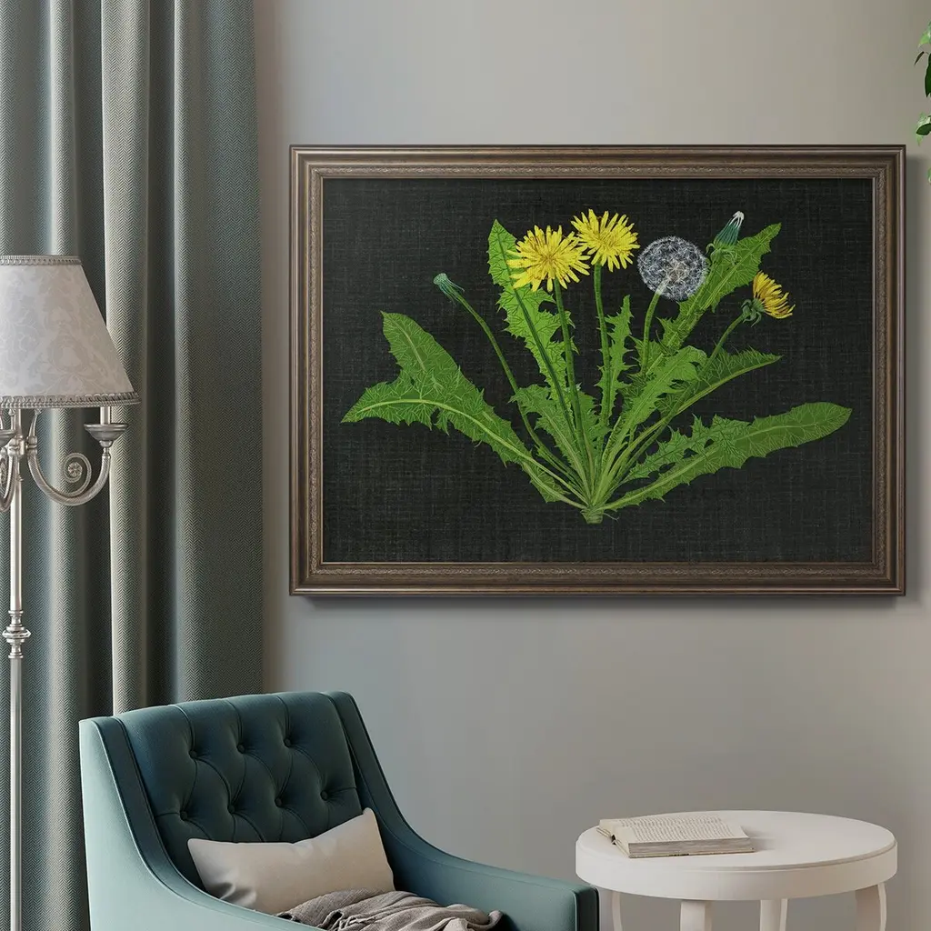 Wild Dandelion II Premium Framed Canvas- Ready to Hang A Premium Framed Canvas created to last. Framed in distressed wood and available in an array of sizes and colors Featuring a beveled a solid wood stretcher bar, each piece comes ready to hand 3 SIZES AVAILABLE 16''X20'' - Overall Size 18'X27'' - Overall Size 24''x36'' - Overall Size Each piece is made to order. Each piece comes with hanging hardware. Made in the USA Ready to Hang Giclee Paper Print Acrylic Glass Beveled Matt Board