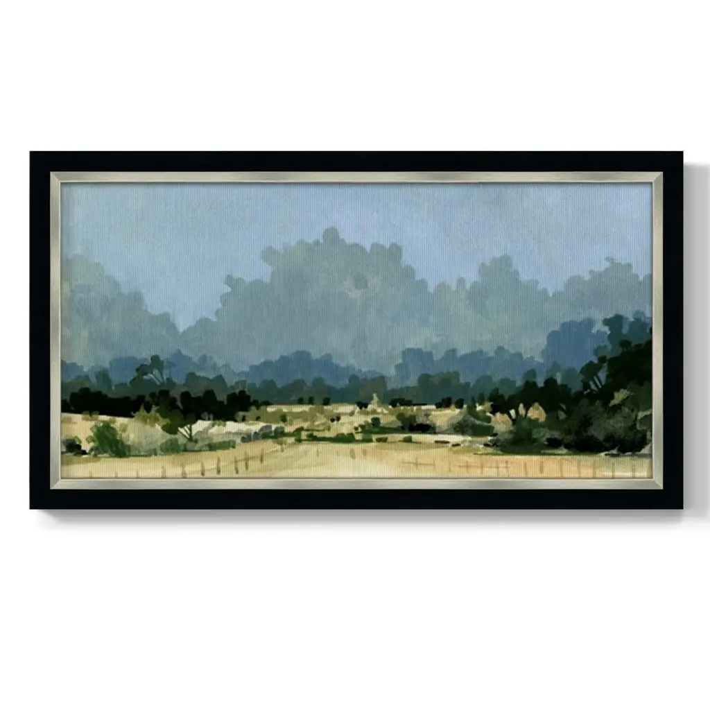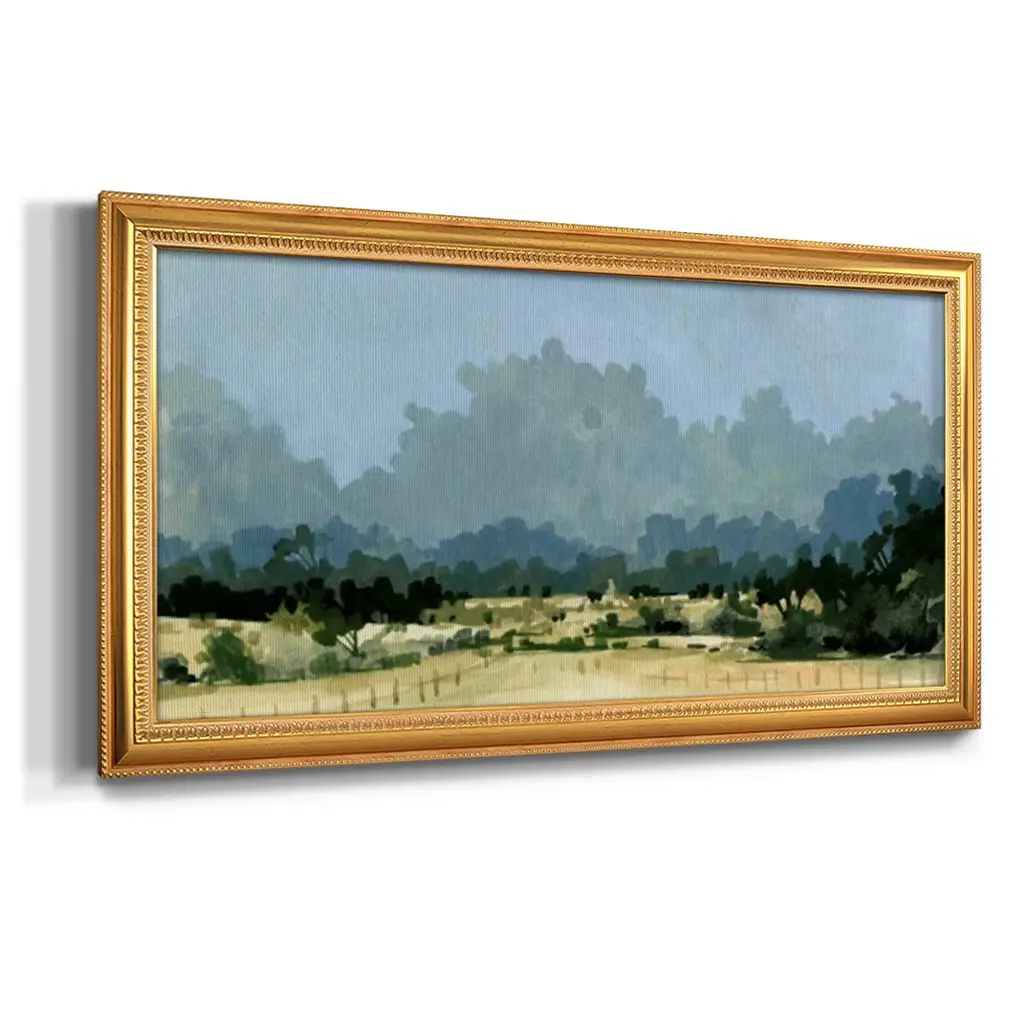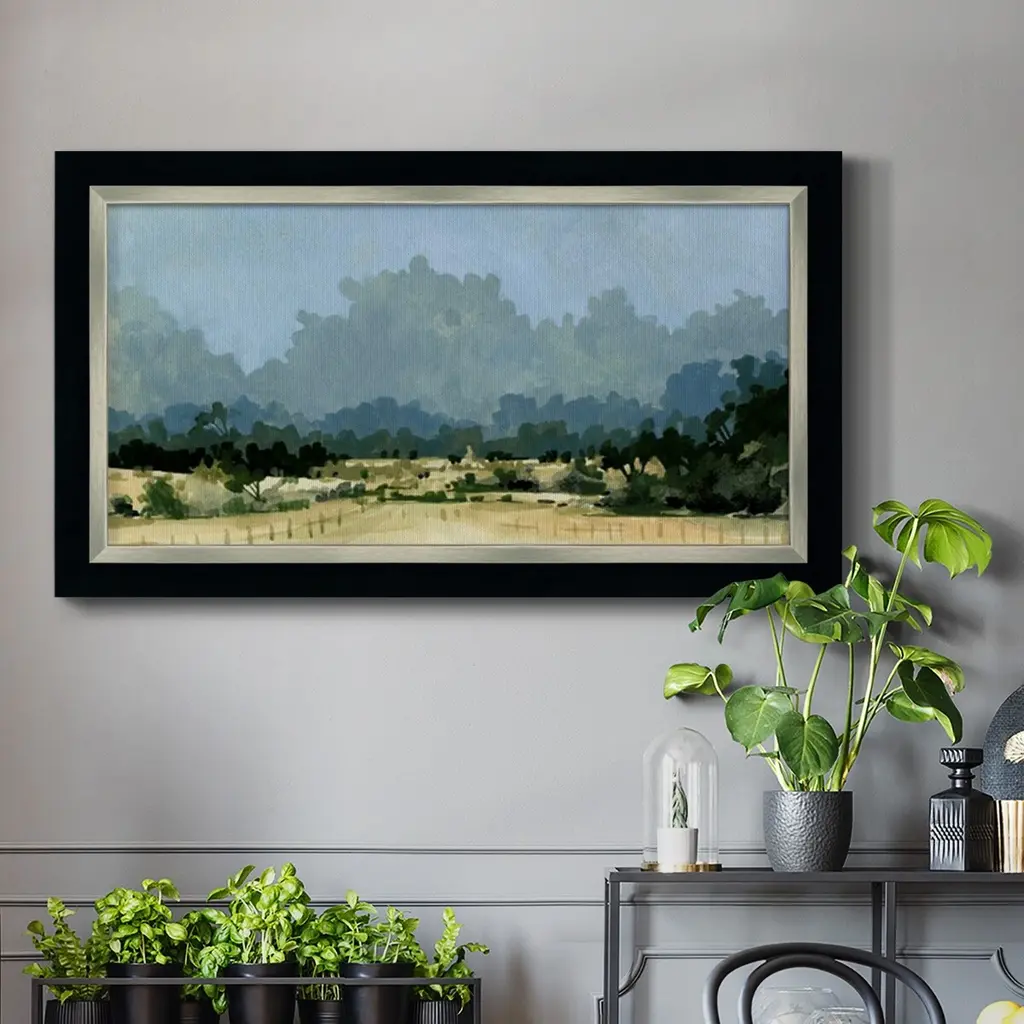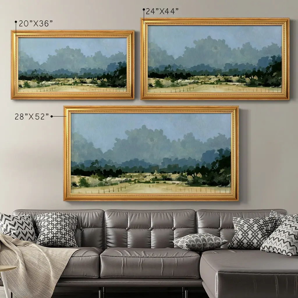 Wild Farmland I Premium Framed Canvas- Ready to Hang A Premium Framed Canvas created to last. Framed in distressed wood and available in an array of sizes and colors Featuring a beveled a solid wood stretcher bar, each piece comes ready to hand 3 SIZES AVAILABLE 21''X37'' - Overall Size 25''X45'' - Overall Size 29''x53'' - Overall Size Each piece is made to order. Each piece comes with hanging hardware. Made in the USA Ready to Hang Giclee Paper Print Acrylic Glass Beveled Matt Board