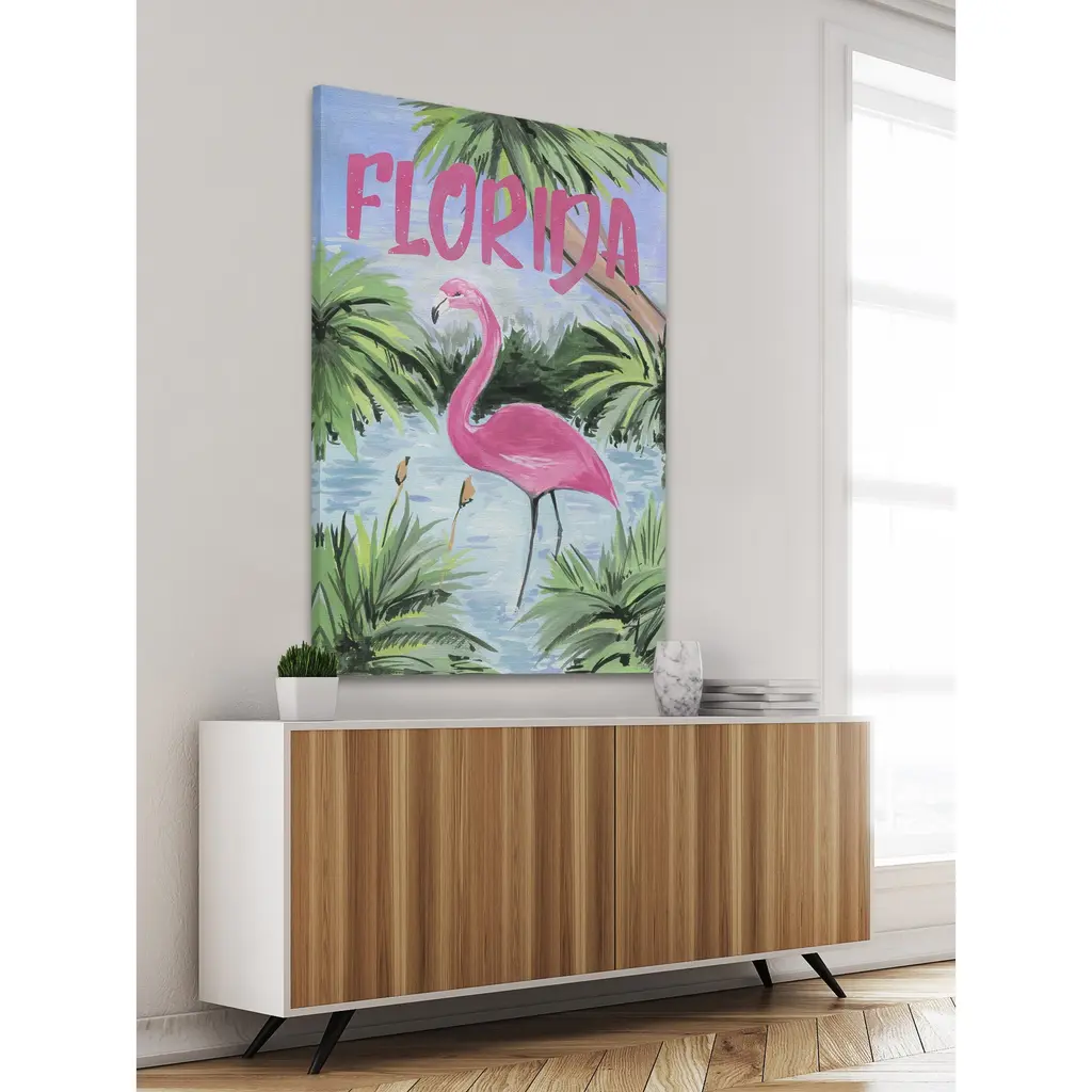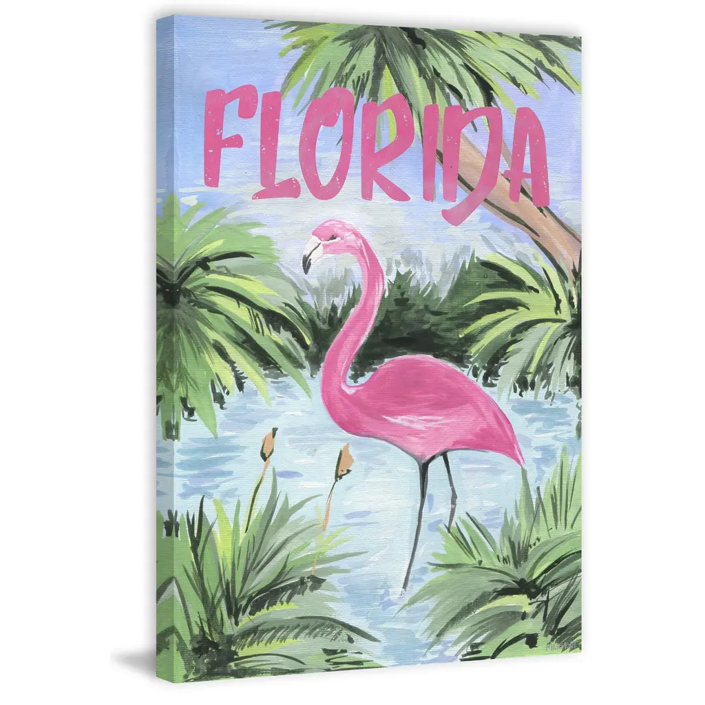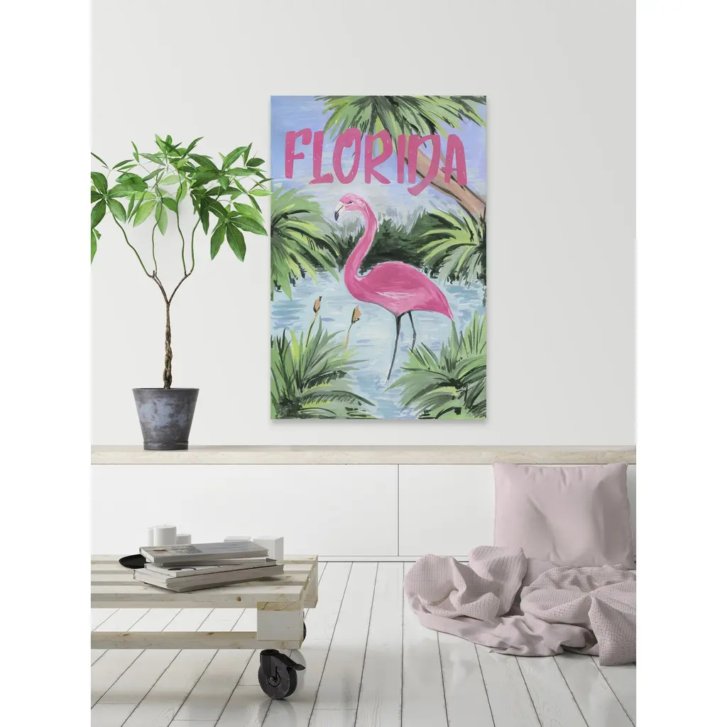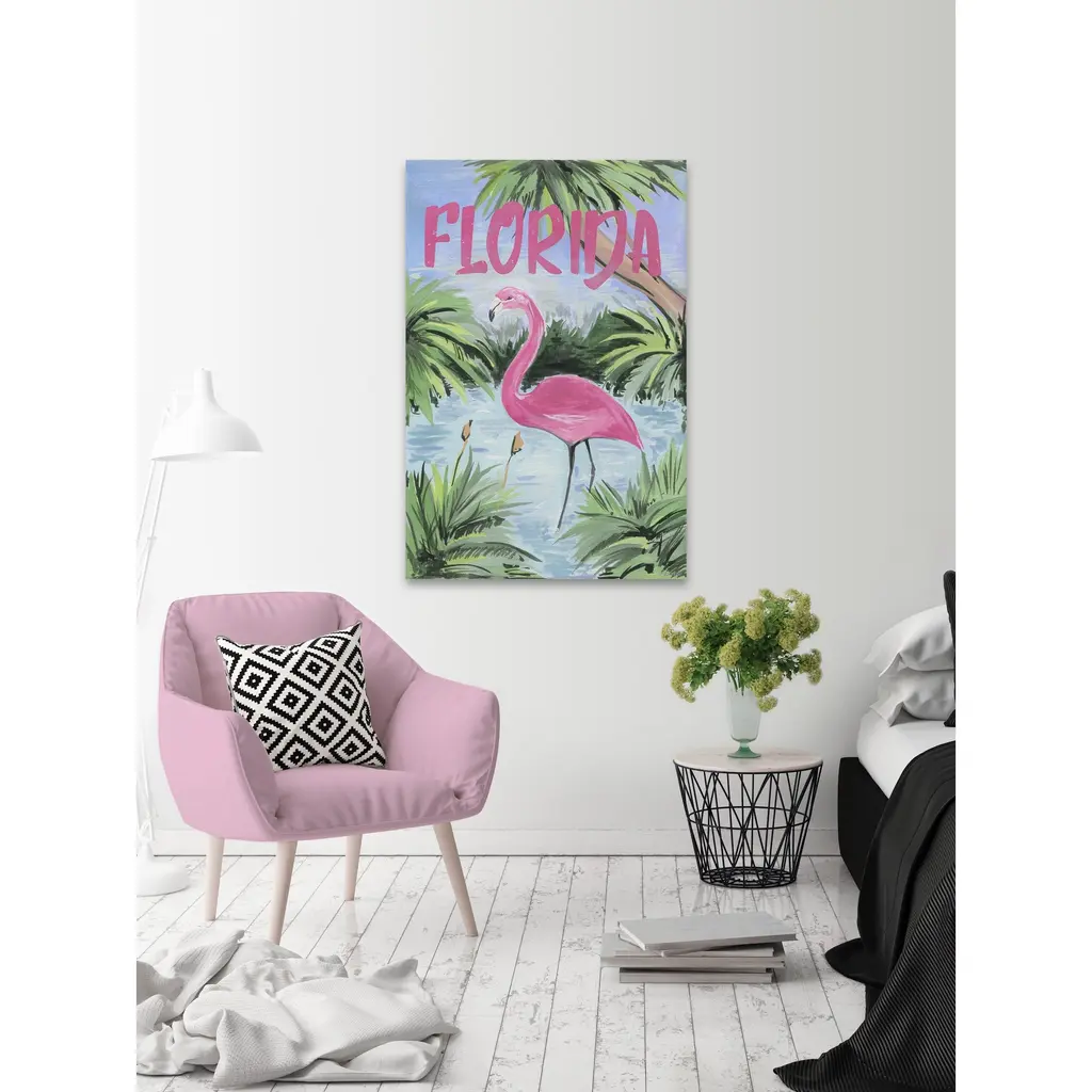 Showcasing a pink flamingo, this print will bring up images of long tropical days and moonlit evenings spent by the Florida shore. Proudly made in the USA, this piece is printed on canvas before it's stretched over non-warping wooden bars for a gallery-wrapped look. With wall-mounting hooks included, this artful accent is ready to hang up as soon as it reaches your front door. • Fine art canvas print from the Marmont Hill Art Collective • Professionally hand stretched • Gallery wrapped in sustainable, non-warping wood • Arrives ready to hang • Made in the USA • Includes a certificate of authenticity