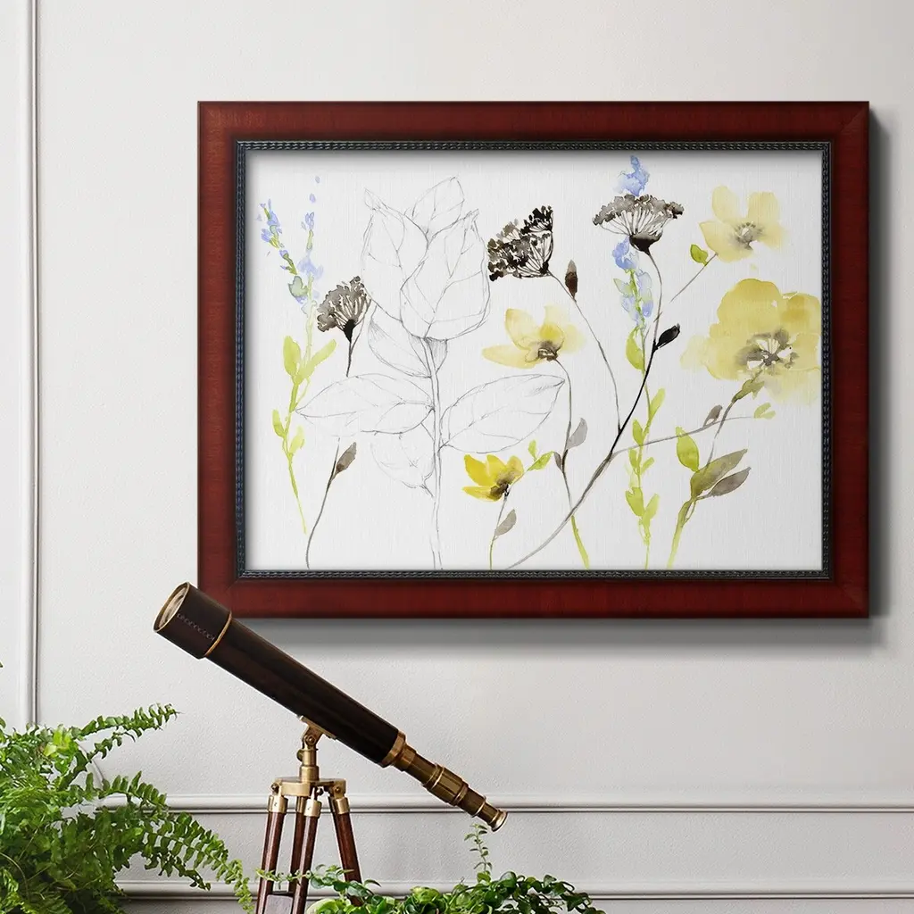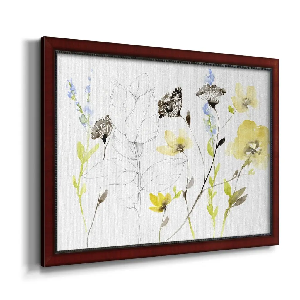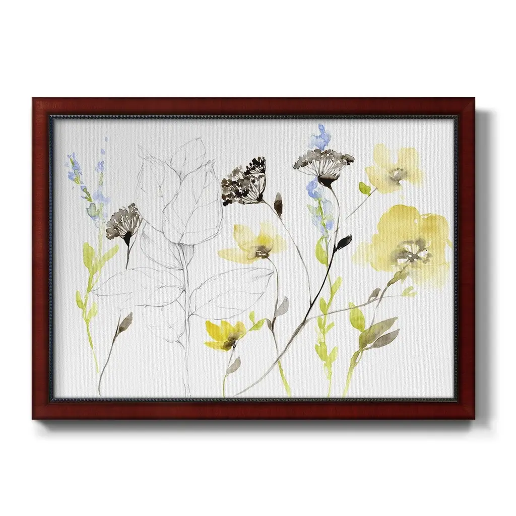 Wild Flowers & Contour I Premium Framed Canvas- Ready to Hang A Premium Framed Canvas created to last. Framed in distressed wood and available in an array of sizes and colors Featuring a beveled a solid wood stretcher bar, each piece comes ready to hand 3 SIZES AVAILABLE 16''X20'' - Overall Size 18'X27'' - Overall Size 24''x36'' - Overall Size Each piece is made to order. Each piece comes with hanging hardware. Made in the USA Ready to Hang Giclee Paper Print Acrylic Glass Beveled Matt Board