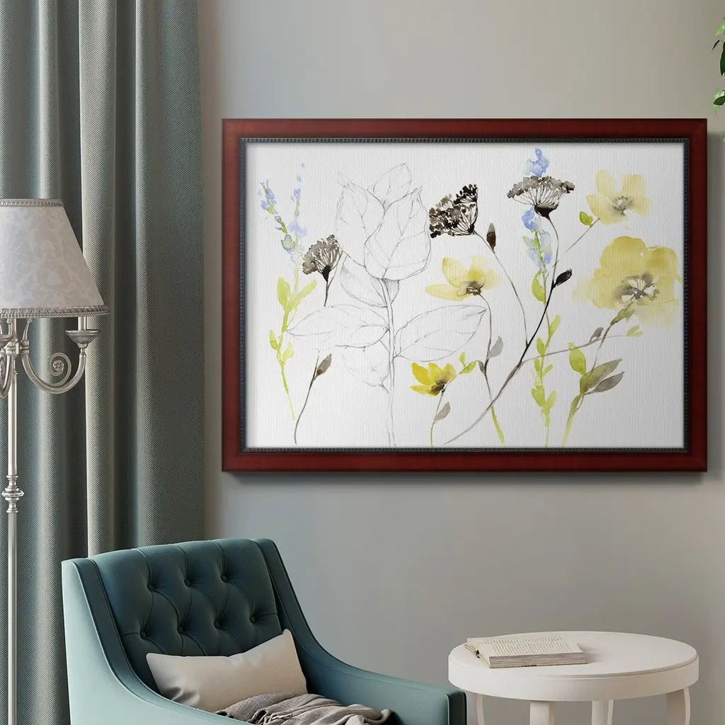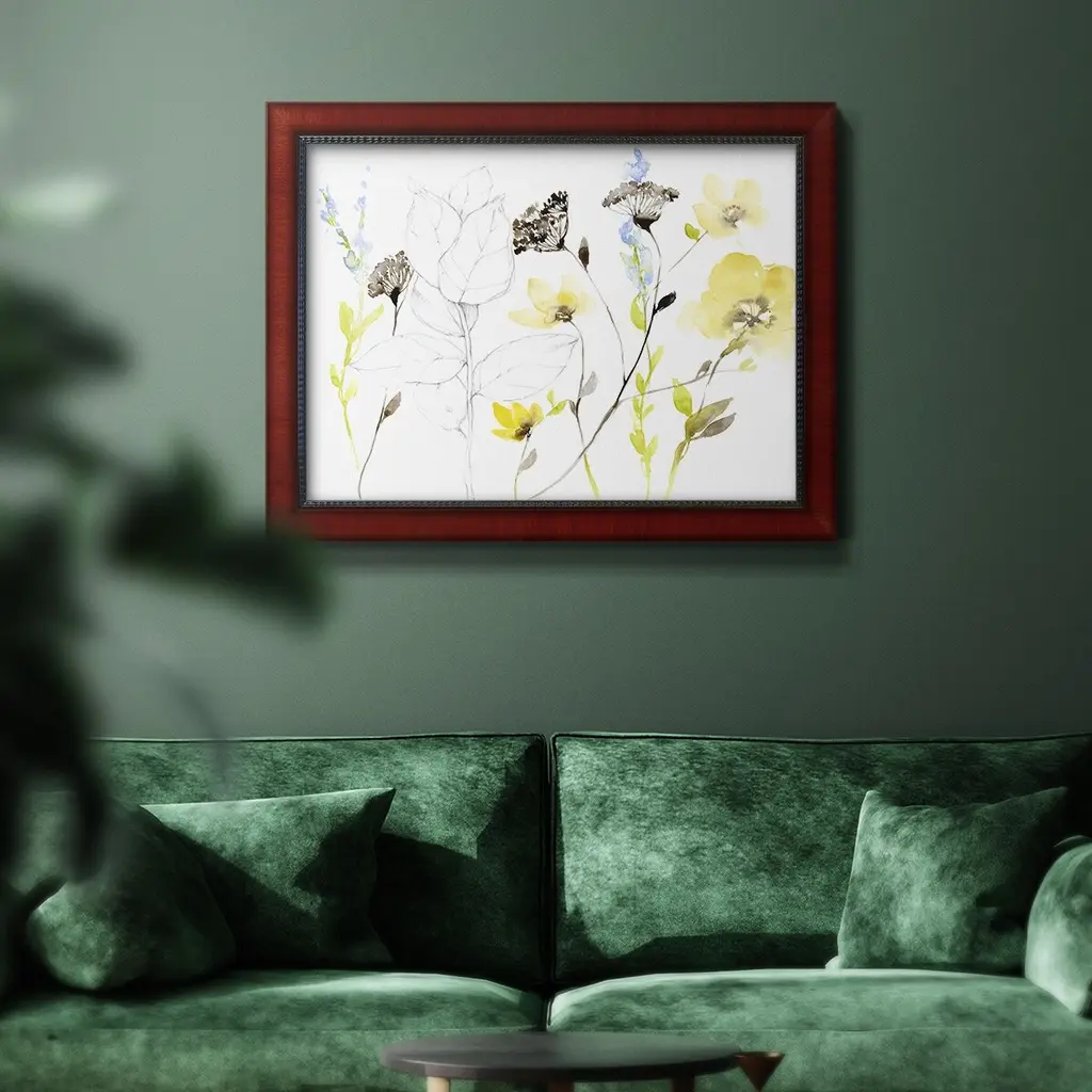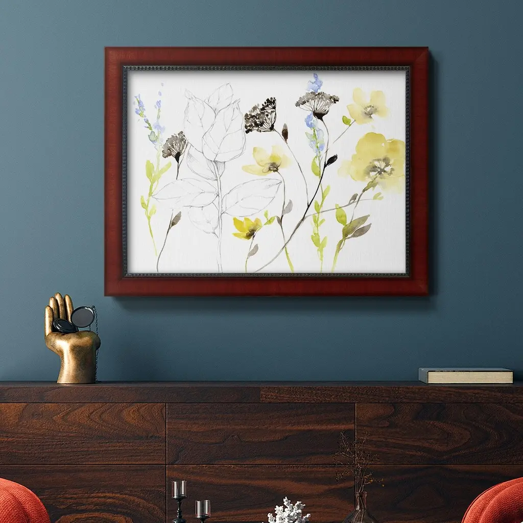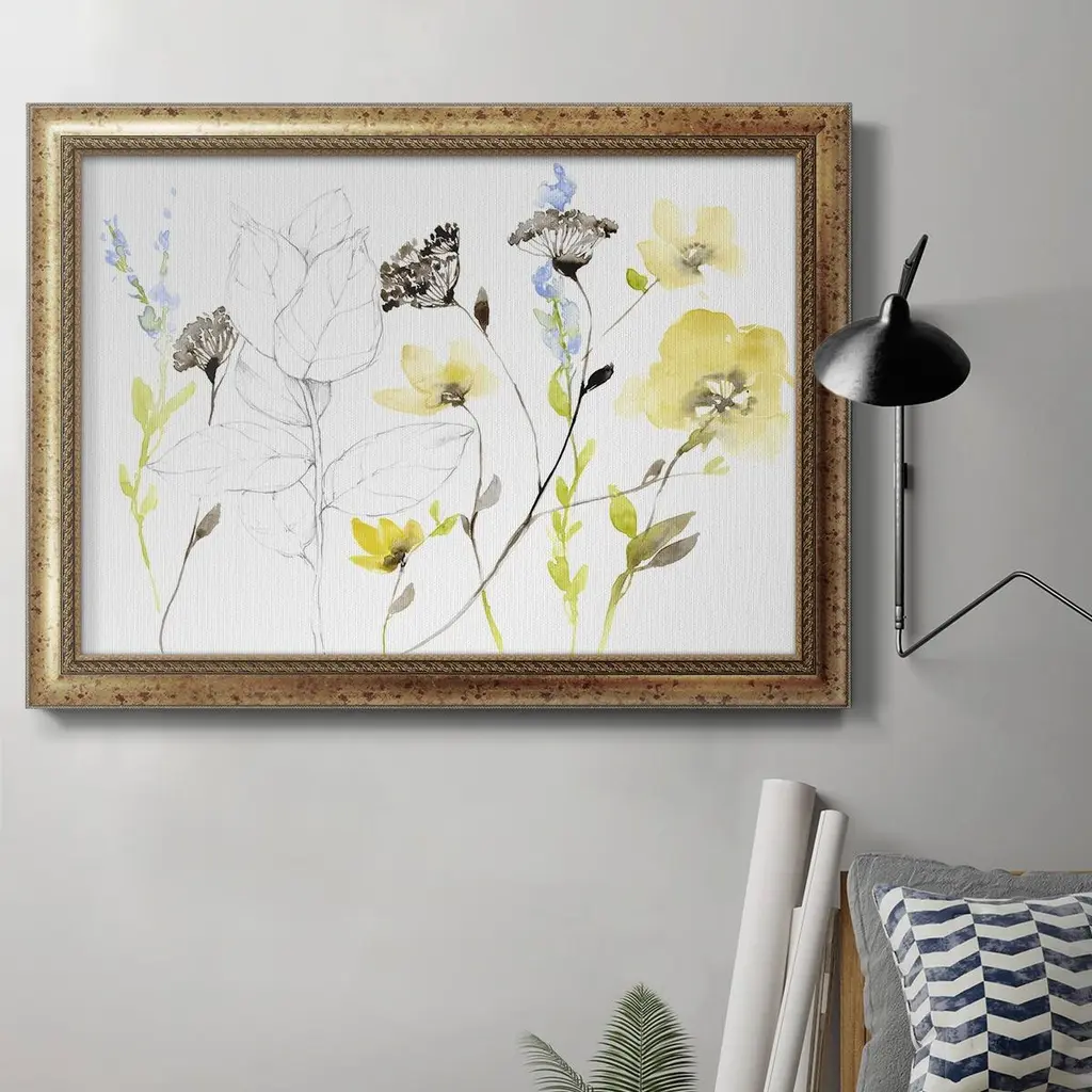 Wild Flowers & Contour I Premium Framed Canvas- Ready to Hang A Premium Framed Canvas created to last. Framed in distressed wood and available in an array of sizes and colors Featuring a beveled a solid wood stretcher bar, each piece comes ready to hand 3 SIZES AVAILABLE 16''X20'' - Overall Size 18'X27'' - Overall Size 24''x36'' - Overall Size Each piece is made to order. Each piece comes with hanging hardware. Made in the USA Ready to Hang Giclee Paper Print Acrylic Glass Beveled Matt Board