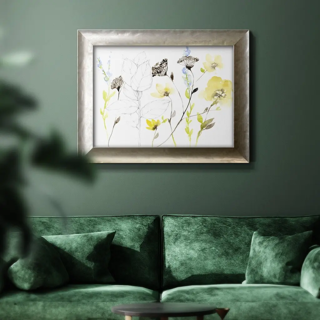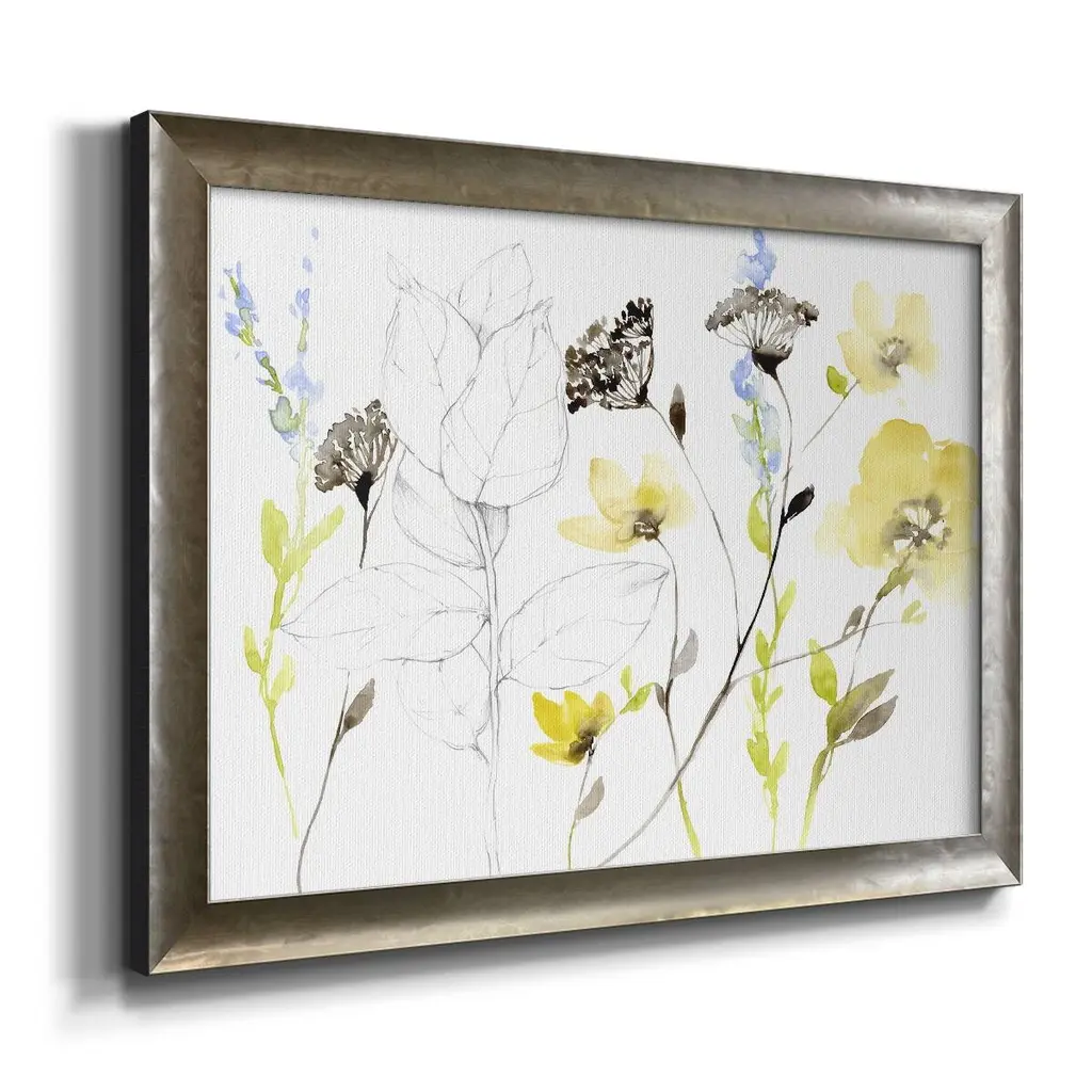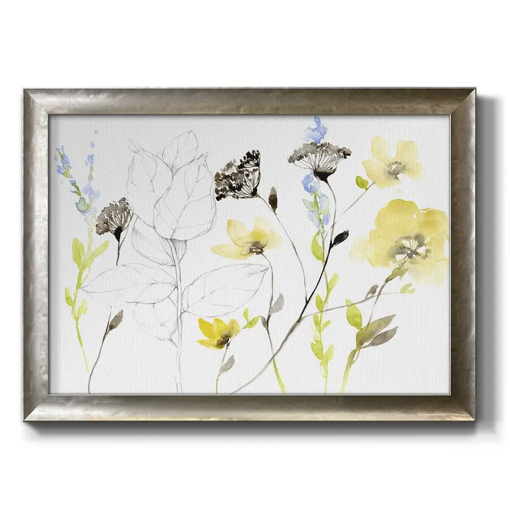 Wild Flowers & Contour I Premium Framed Canvas- Ready to Hang A Premium Framed Canvas created to last. Framed in distressed wood and available in an array of sizes and colors Featuring a beveled a solid wood stretcher bar, each piece comes ready to hand 3 SIZES AVAILABLE 16''X20'' - Overall Size 18'X27'' - Overall Size 24''x36'' - Overall Size Each piece is made to order. Each piece comes with hanging hardware. Made in the USA Ready to Hang Giclee Paper Print Acrylic Glass Beveled Matt Board