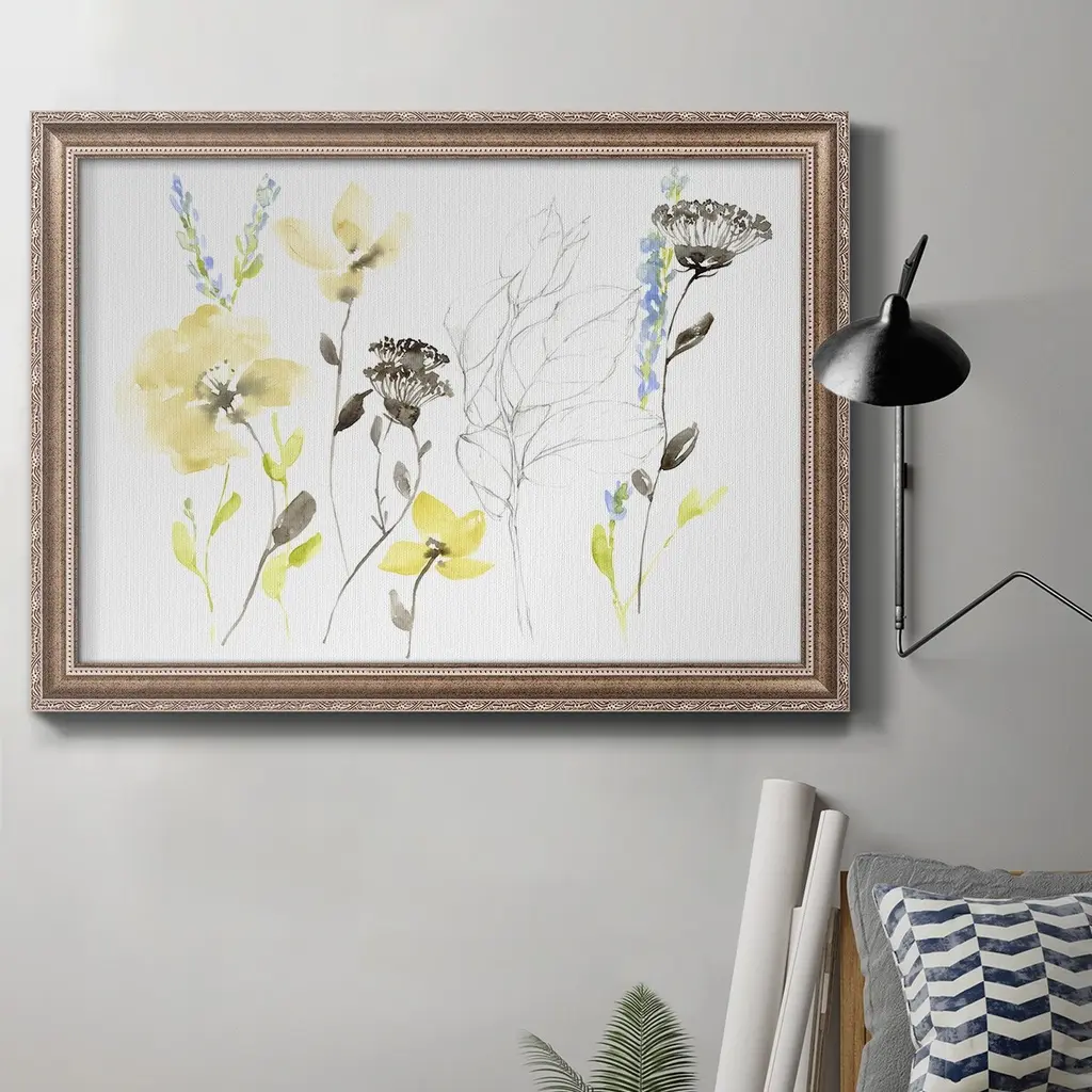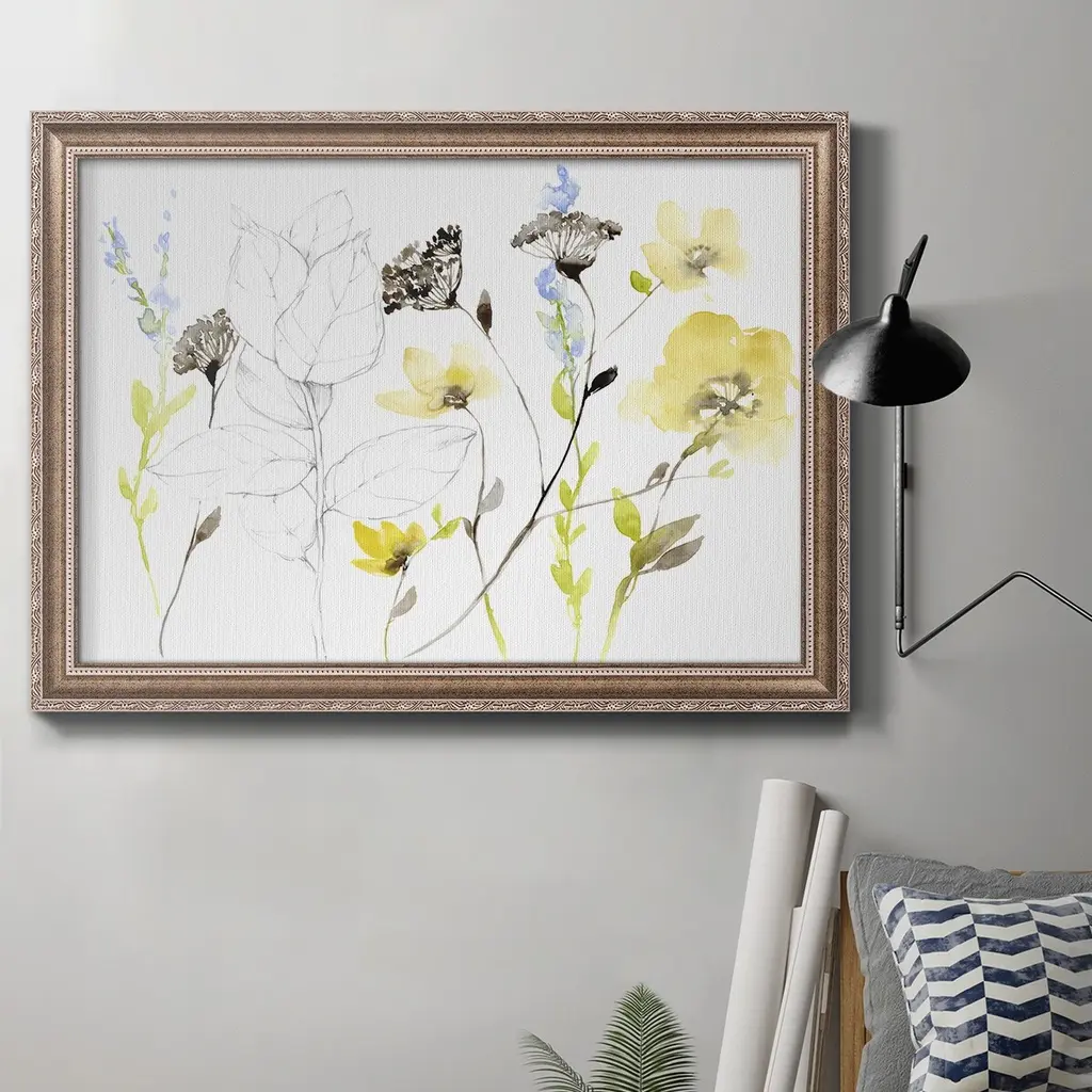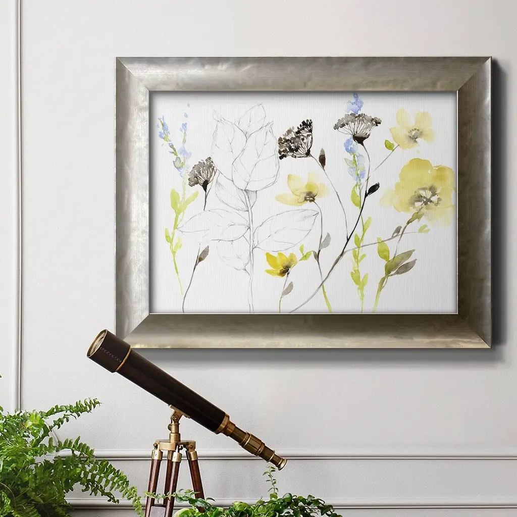 Wild Flowers & Contour I Premium Framed Canvas- Ready to Hang A Premium Framed Canvas created to last. Framed in distressed wood and available in an array of sizes and colors Featuring a beveled a solid wood stretcher bar, each piece comes ready to hand 3 SIZES AVAILABLE 16''X20'' - Overall Size 18'X27'' - Overall Size 24''x36'' - Overall Size Each piece is made to order. Each piece comes with hanging hardware. Made in the USA Ready to Hang Giclee Paper Print Acrylic Glass Beveled Matt Board