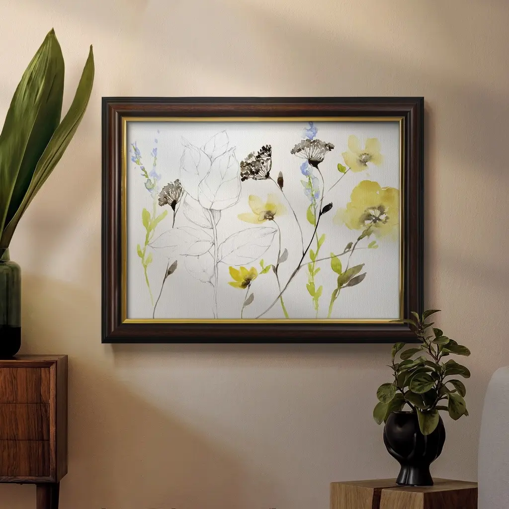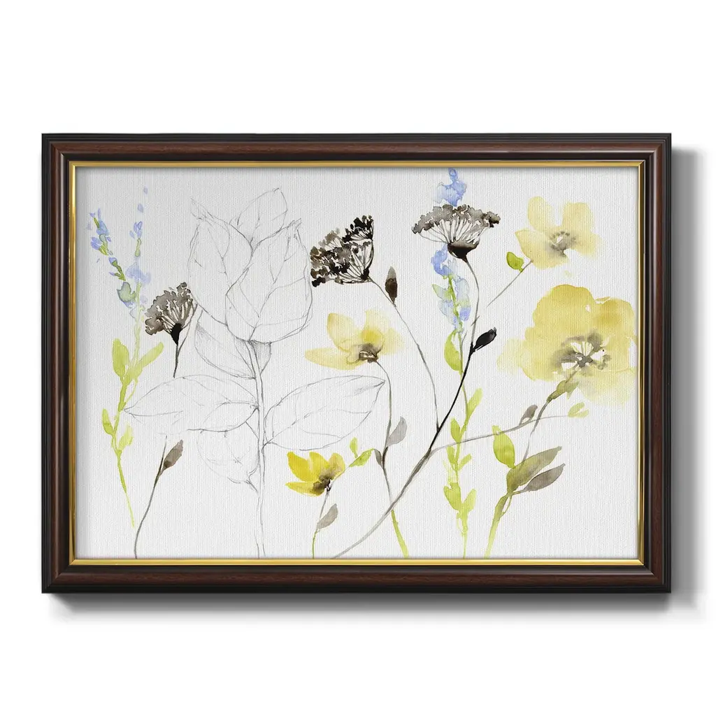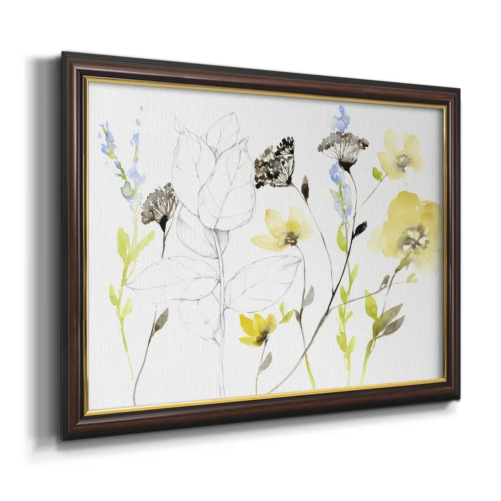 Wild Flowers & Contour I Premium Framed Canvas- Ready to Hang A Premium Framed Canvas created to last. Framed in distressed wood and available in an array of sizes and colors Featuring a beveled a solid wood stretcher bar, each piece comes ready to hand 3 SIZES AVAILABLE 16''X20'' - Overall Size 18'X27'' - Overall Size 24''x36'' - Overall Size Each piece is made to order. Each piece comes with hanging hardware. Made in the USA Ready to Hang Giclee Paper Print Acrylic Glass Beveled Matt Board
