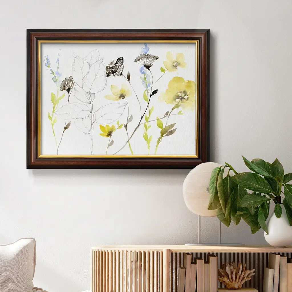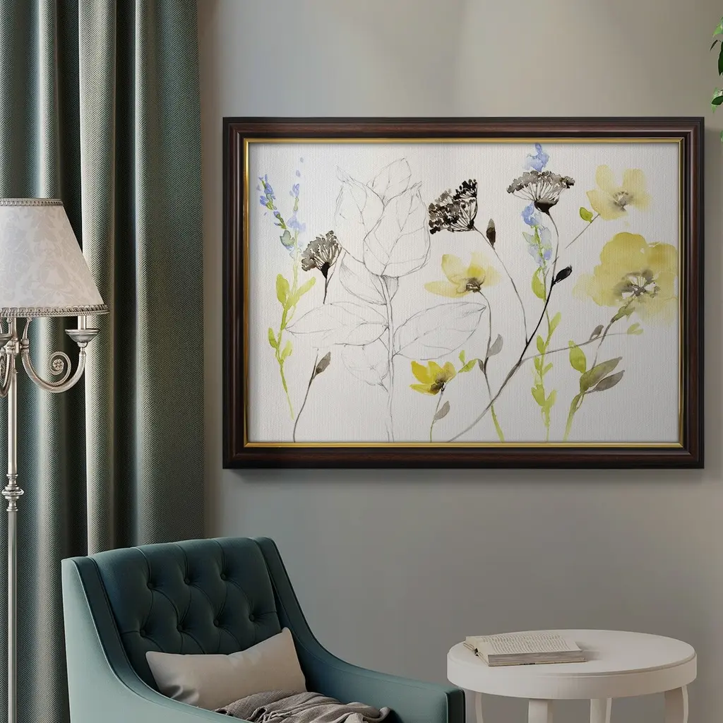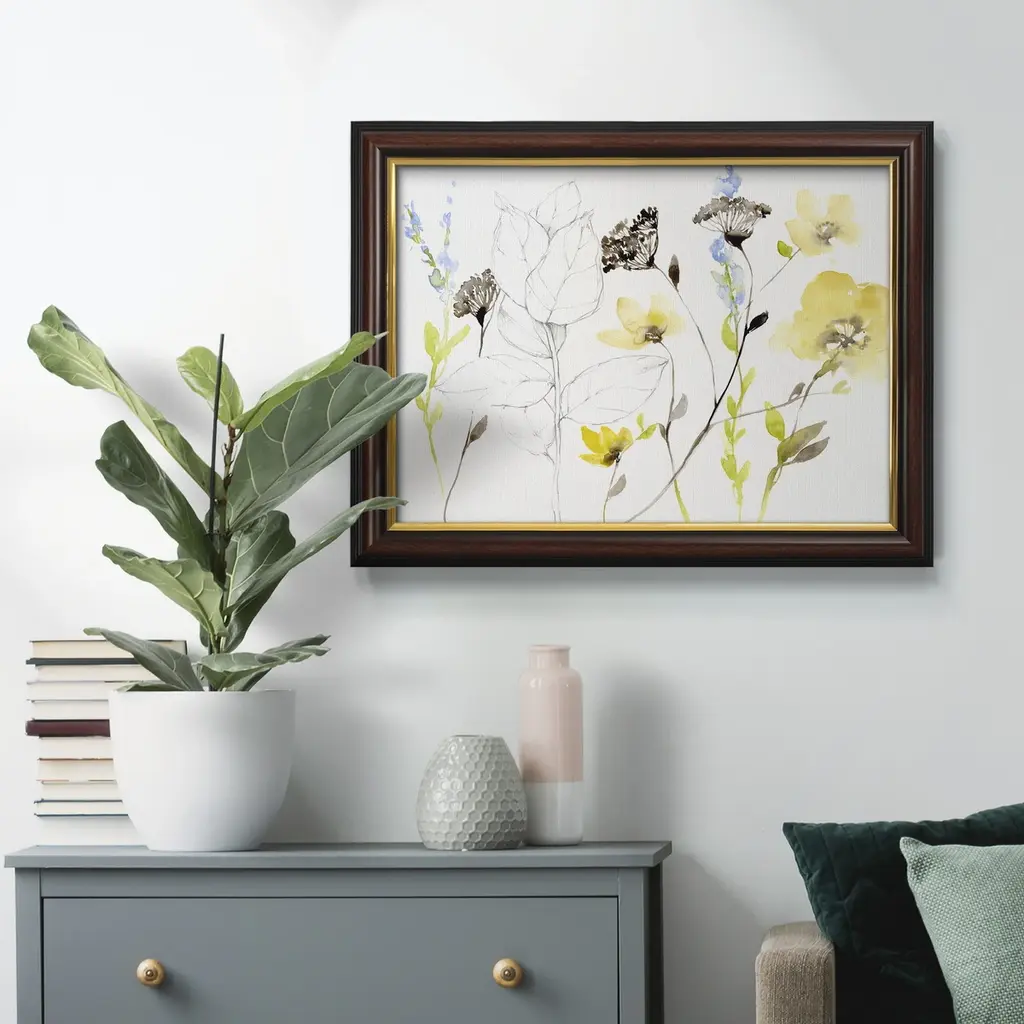 Wild Flowers & Contour I Premium Framed Canvas- Ready to Hang A Premium Framed Canvas created to last. Framed in distressed wood and available in an array of sizes and colors Featuring a beveled a solid wood stretcher bar, each piece comes ready to hand 3 SIZES AVAILABLE 16''X20'' - Overall Size 18'X27'' - Overall Size 24''x36'' - Overall Size Each piece is made to order. Each piece comes with hanging hardware. Made in the USA Ready to Hang Giclee Paper Print Acrylic Glass Beveled Matt Board