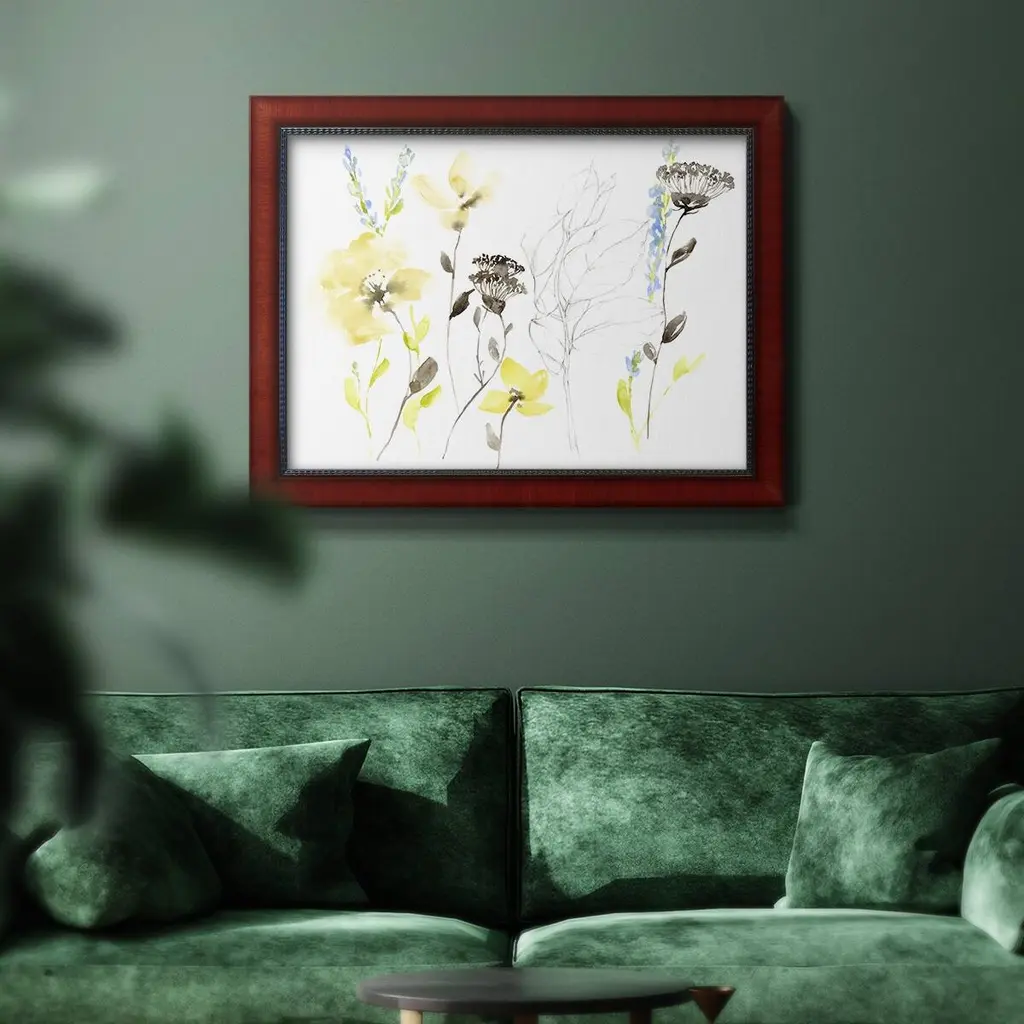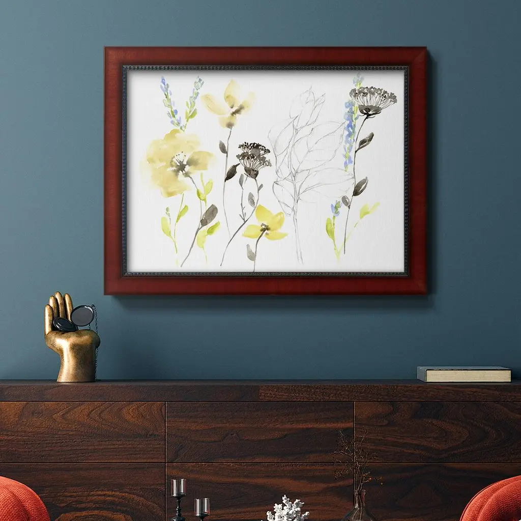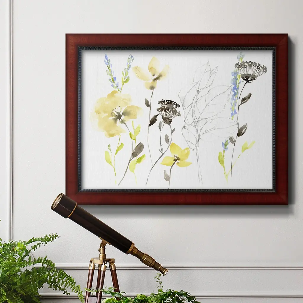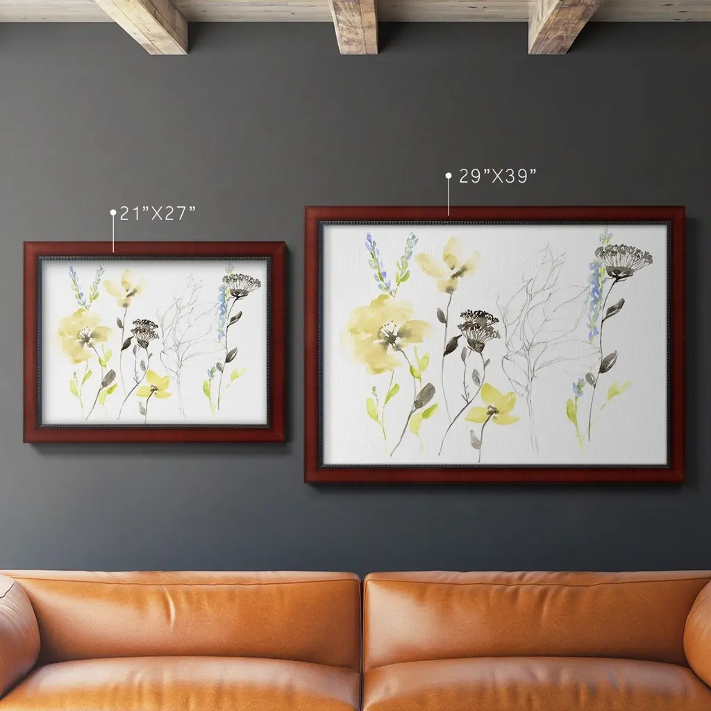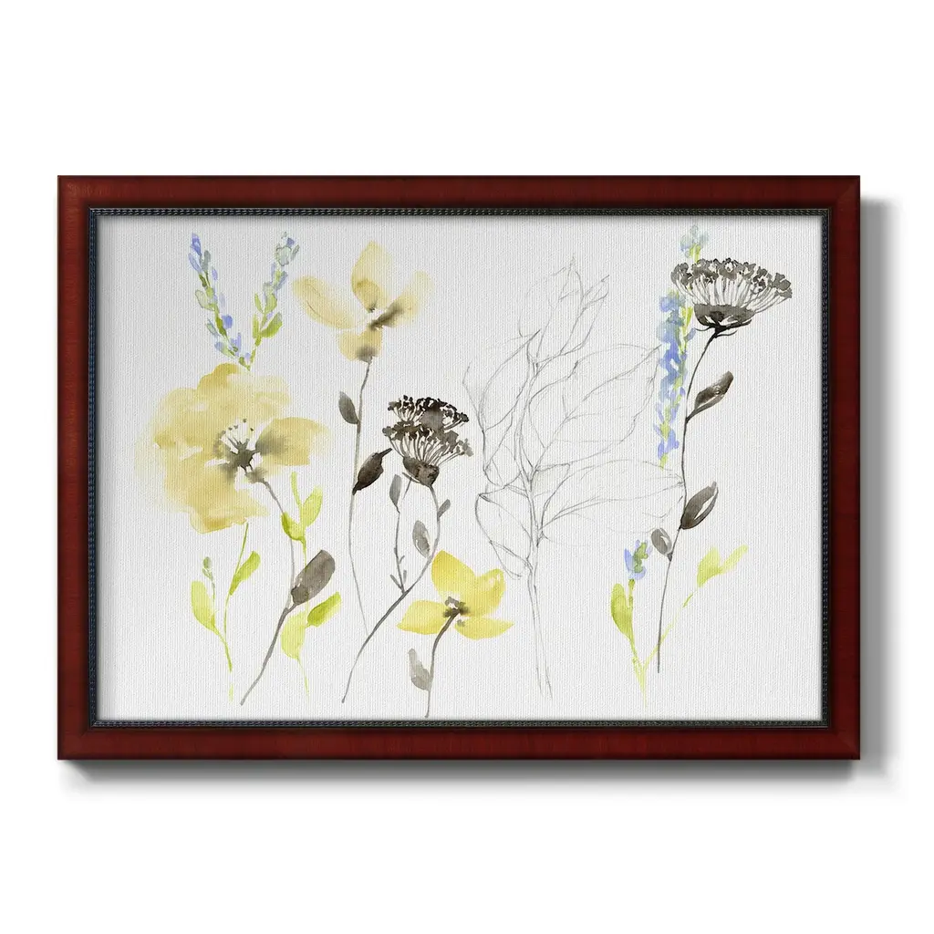 Wild Flowers & Contour II Premium Framed Canvas- Ready to Hang A Premium Framed Canvas created to last. Framed in distressed wood and available in an array of sizes and colors Featuring a beveled a solid wood stretcher bar, each piece comes ready to hand 3 SIZES AVAILABLE 16''X20'' - Overall Size 18'X27'' - Overall Size 24''x36'' - Overall Size Each piece is made to order. Each piece comes with hanging hardware. Made in the USA Ready to Hang Giclee Paper Print Acrylic Glass Beveled Matt Board
