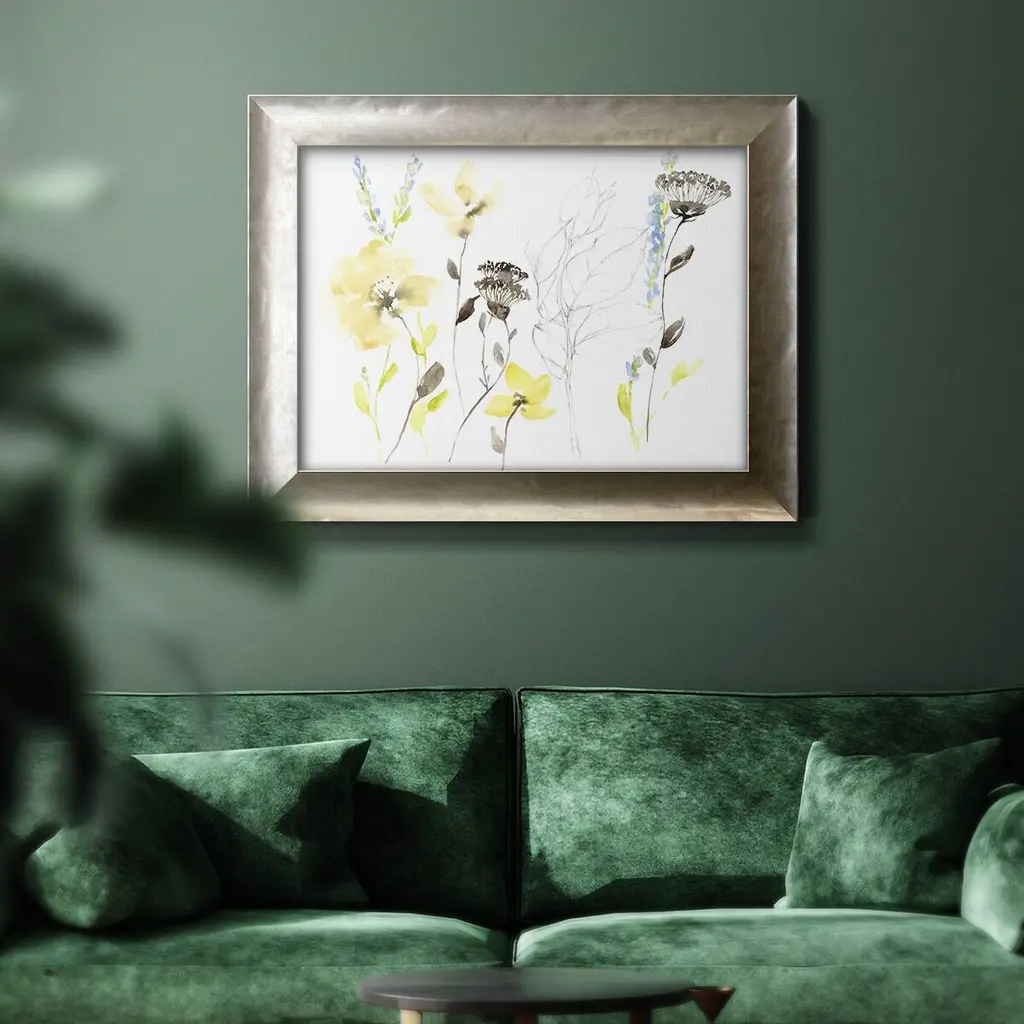 Wild Flowers & Contour II Premium Framed Canvas- Ready to Hang A Premium Framed Canvas created to last. Framed in distressed wood and available in an array of sizes and colors Featuring a beveled a solid wood stretcher bar, each piece comes ready to hand 3 SIZES AVAILABLE 16''X20'' - Overall Size 18'X27'' - Overall Size 24''x36'' - Overall Size Each piece is made to order. Each piece comes with hanging hardware. Made in the USA Ready to Hang Giclee Paper Print Acrylic Glass Beveled Matt Board