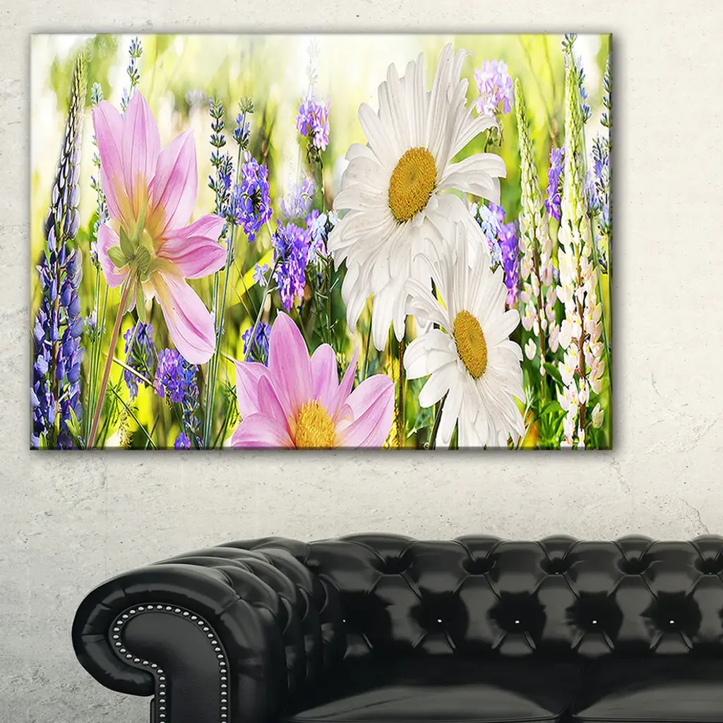 The Wild Flowers Field at Sunset canvas art print is sure to make an impression on anyone who sees it. This artwork is gallery wrapped around a 1-inch solid wood frame and arrives carefully packaged and entirely ready to hang on the wall. Design Art only uses the highest resolution and pigments to ensure a crisp colorful print that is never faded or pixelated. This artwork is sure to be a conversation starter in any home or office.
