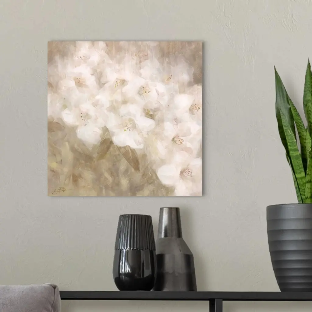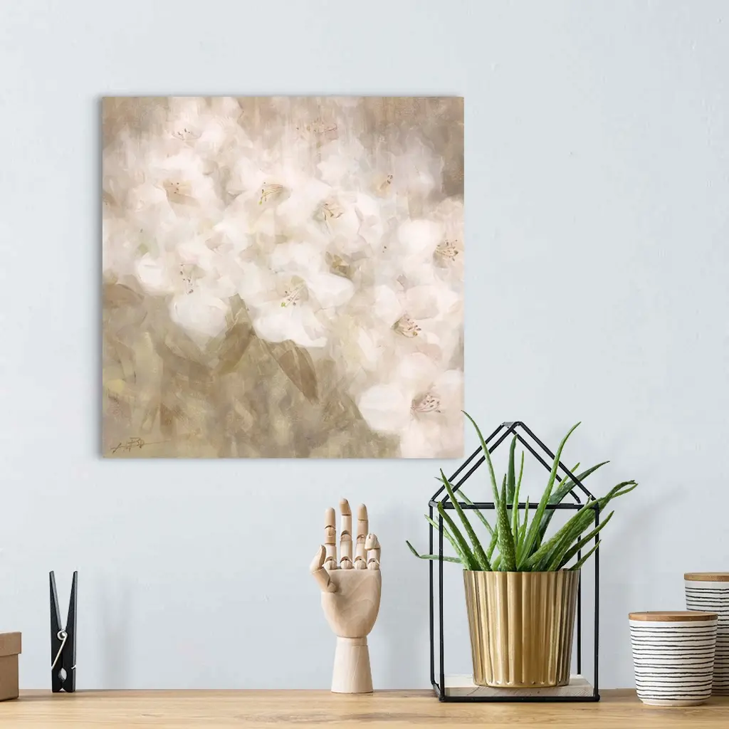 Contemporary painting of a group of white flowers.