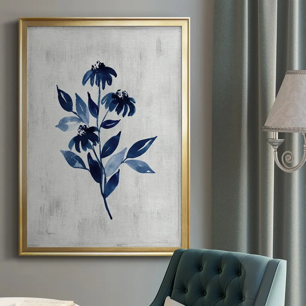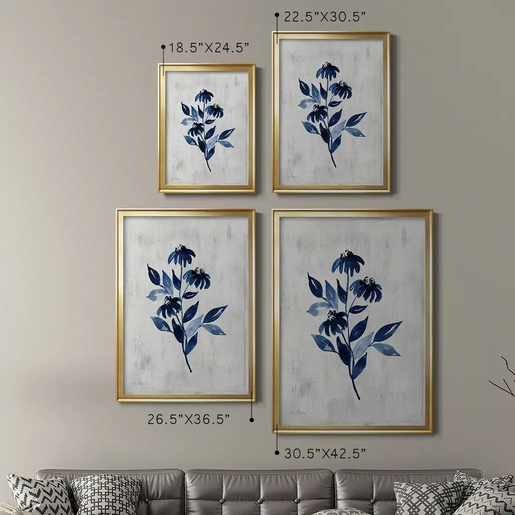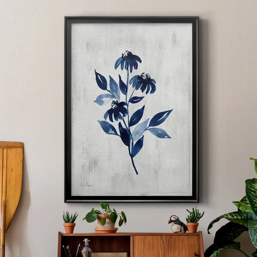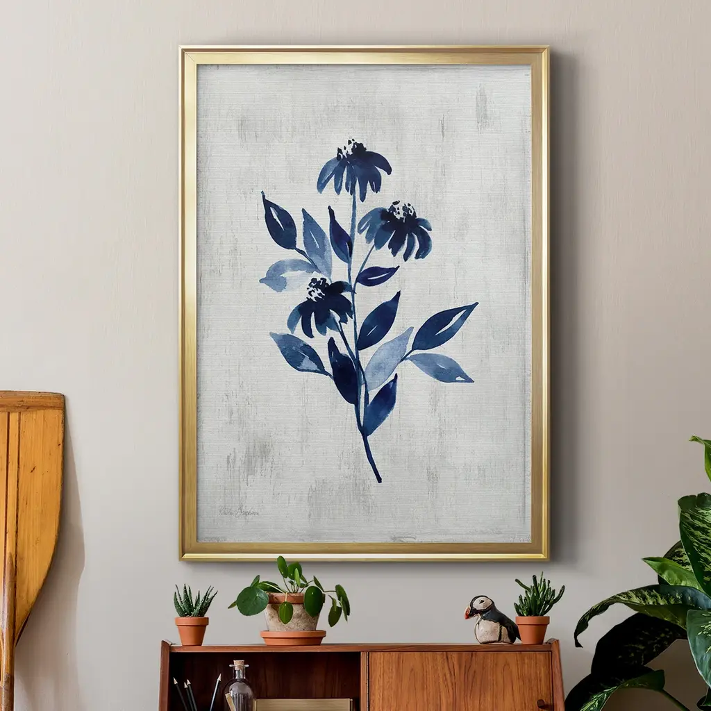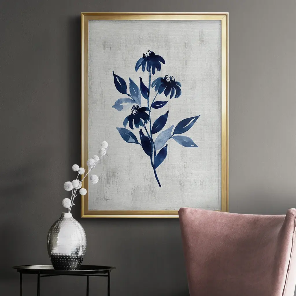 Wild Indigo I Premium Framed Print - Ready to Hang A Premium Framed Print created to last. Framed in distressed wood and available in an array of sizes and colors Featuring a beveled a solid wood stretcher bar, each piece comes ready to hand 4 SIZES AVAILABLE 30.5''X42.5'' - Overall Size 26.5'X36.5'' - Overall Size 22.5''x30.5'' - Overall Size 18.5''x24.5'' - Overall Size Each piece is made to order. Each piece comes with hanging hardware. Made in the USA Ready to Hang