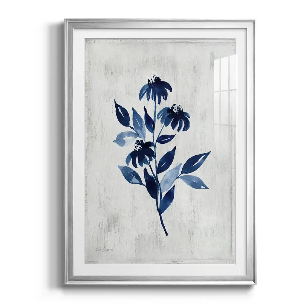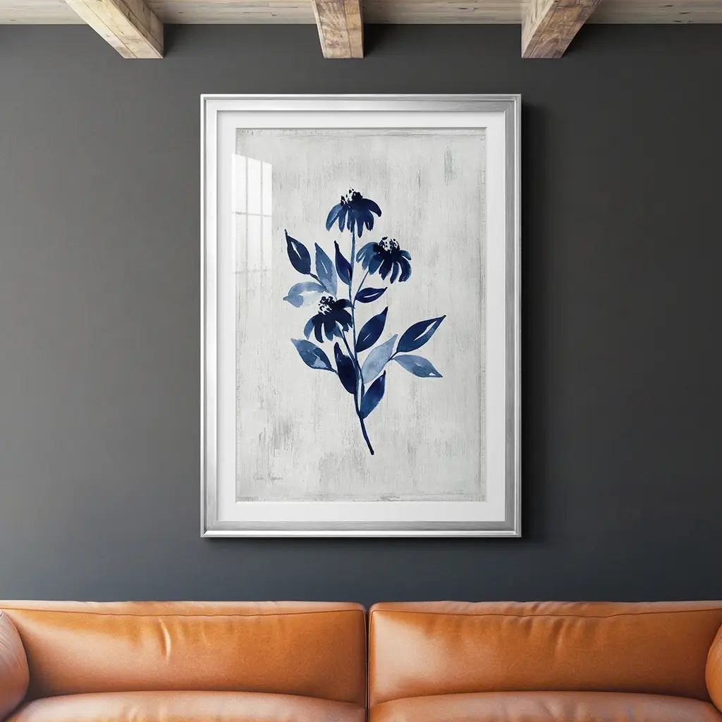 Wild Indigo I Premium Framed Print - Ready to Hang A Premium Framed Print created to last. Framed in distressed wood and available in an array of sizes and colors Featuring a beveled a solid wood stretcher bar, each piece comes ready to hand 4 SIZES AVAILABLE 30.5''X42.5'' - Overall Size 26.5'X36.5'' - Overall Size 22.5''x30.5'' - Overall Size 18.5''x24.5'' - Overall Size Each piece is made to order. Each piece comes with hanging hardware. Made in the USA Ready to Hang Giclee Paper Print Acrylic Glass Beveled Matt Board