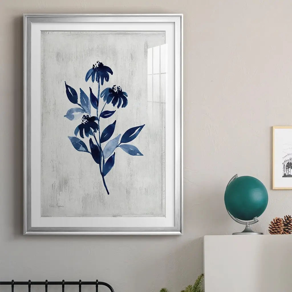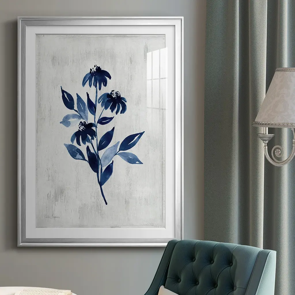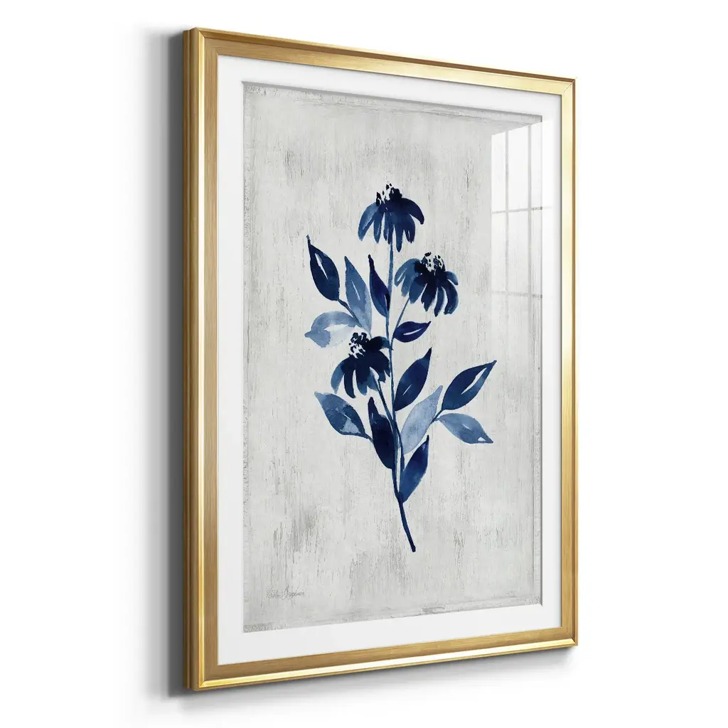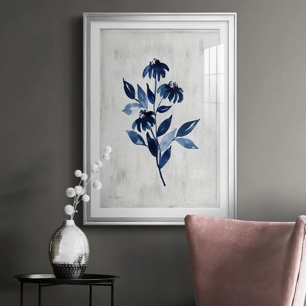 Wild Indigo I Premium Framed Print - Ready to Hang A Premium Framed Print created to last. Framed in distressed wood and available in an array of sizes and colors Featuring a beveled a solid wood stretcher bar, each piece comes ready to hand 4 SIZES AVAILABLE 30.5''X42.5'' - Overall Size 26.5'X36.5'' - Overall Size 22.5''x30.5'' - Overall Size 18.5''x24.5'' - Overall Size Each piece is made to order. Each piece comes with hanging hardware. Made in the USA Ready to Hang Giclee Paper Print Acrylic Glass Beveled Matt Board
