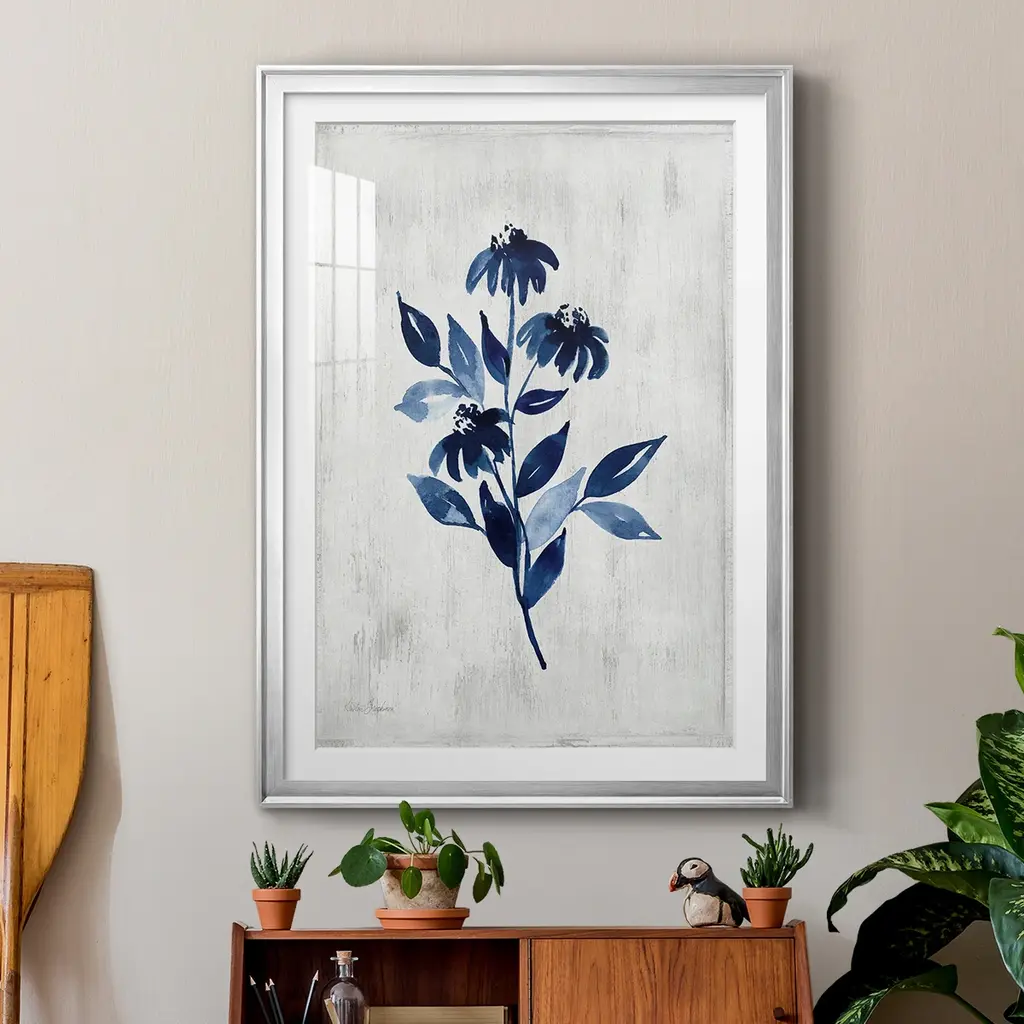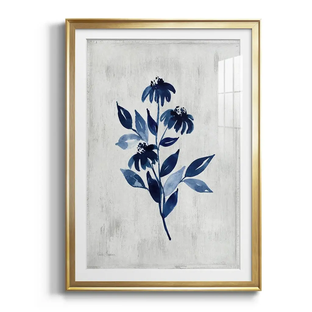 Wild Indigo I Premium Framed Print - Ready to Hang A Premium Framed Print created to last. Framed in distressed wood and available in an array of sizes and colors Featuring a beveled a solid wood stretcher bar, each piece comes ready to hand 4 SIZES AVAILABLE 30.5''X42.5'' - Overall Size 26.5'X36.5'' - Overall Size 22.5''x30.5'' - Overall Size 18.5''x24.5'' - Overall Size Each piece is made to order. Each piece comes with hanging hardware. Made in the USA Ready to Hang Giclee Paper Print Acrylic Glass Beveled Matt Board