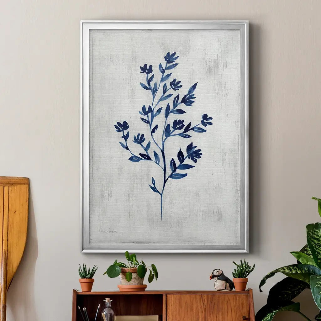 Wild Indigo II Premium Framed Print - Ready to Hang A Premium Framed Print created to last. Framed in distressed wood and available in an array of sizes and colors Featuring a beveled a solid wood stretcher bar, each piece comes ready to hand 4 SIZES AVAILABLE 30.5''X42.5'' - Overall Size 26.5'X36.5'' - Overall Size 22.5''x30.5'' - Overall Size 18.5''x24.5'' - Overall Size Each piece is made to order. Each piece comes with hanging hardware. Made in the USA Ready to Hang