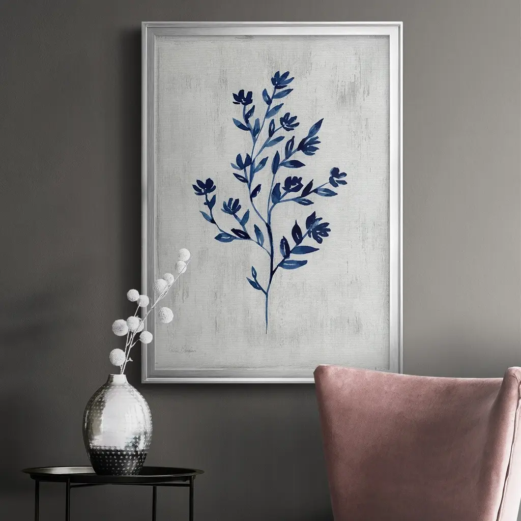 Wild Indigo II Premium Framed Print - Ready to Hang A Premium Framed Print created to last. Framed in distressed wood and available in an array of sizes and colors Featuring a beveled a solid wood stretcher bar, each piece comes ready to hand 4 SIZES AVAILABLE 30.5''X42.5'' - Overall Size 26.5'X36.5'' - Overall Size 22.5''x30.5'' - Overall Size 18.5''x24.5'' - Overall Size Each piece is made to order. Each piece comes with hanging hardware. Made in the USA Ready to Hang