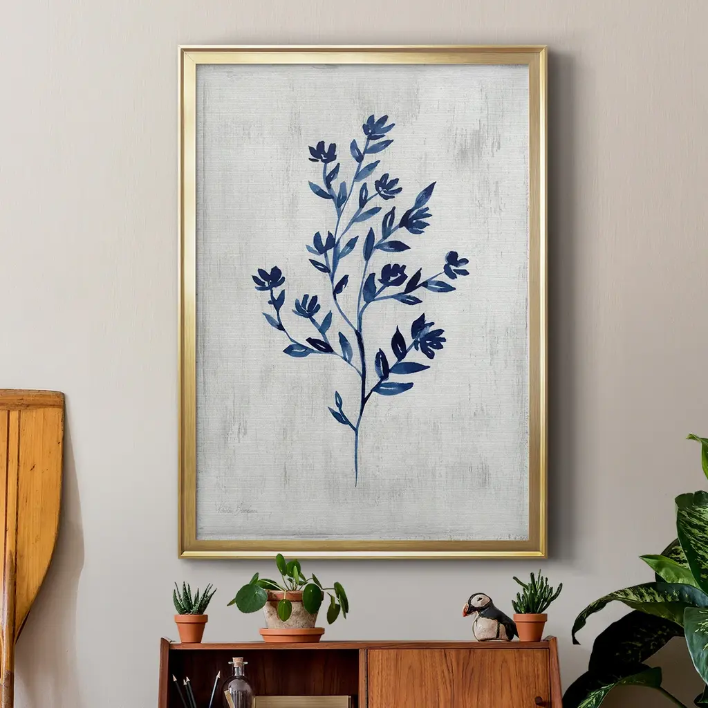 Wild Indigo II Premium Framed Print - Ready to Hang A Premium Framed Print created to last. Framed in distressed wood and available in an array of sizes and colors Featuring a beveled a solid wood stretcher bar, each piece comes ready to hand 4 SIZES AVAILABLE 30.5''X42.5'' - Overall Size 26.5'X36.5'' - Overall Size 22.5''x30.5'' - Overall Size 18.5''x24.5'' - Overall Size Each piece is made to order. Each piece comes with hanging hardware. Made in the USA Ready to Hang