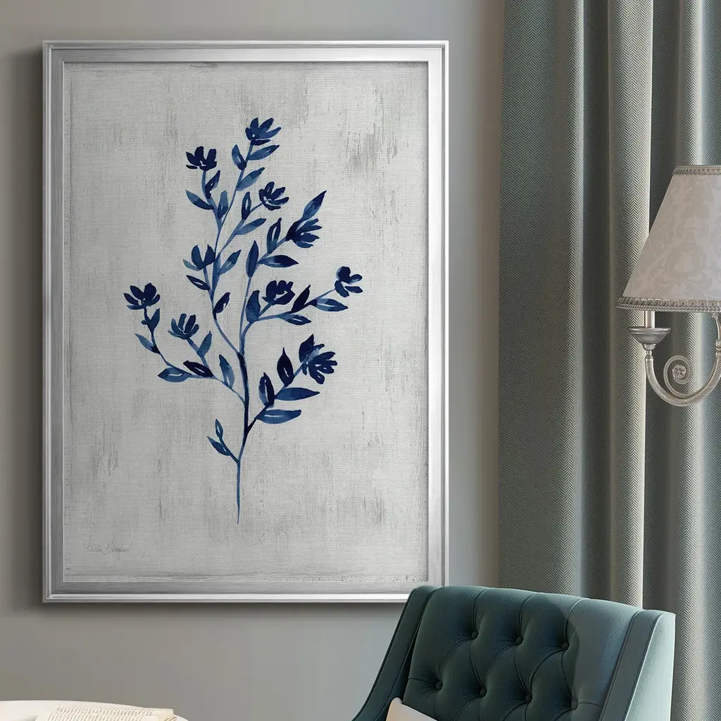Wild Indigo II Premium Framed Print - Ready to Hang A Premium Framed Print created to last. Framed in distressed wood and available in an array of sizes and colors Featuring a beveled a solid wood stretcher bar, each piece comes ready to hand 4 SIZES AVAILABLE 30.5''X42.5'' - Overall Size 26.5'X36.5'' - Overall Size 22.5''x30.5'' - Overall Size 18.5''x24.5'' - Overall Size Each piece is made to order. Each piece comes with hanging hardware. Made in the USA Ready to Hang