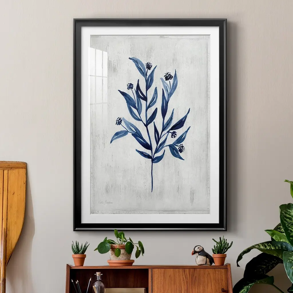 Wild Indigo III Premium Framed Print - Ready to Hang A Premium Framed Print created to last. Framed in distressed wood and available in an array of sizes and colors Featuring a beveled a solid wood stretcher bar, each piece comes ready to hand 4 SIZES AVAILABLE 30.5''X42.5'' - Overall Size 26.5'X36.5'' - Overall Size 22.5''x30.5'' - Overall Size 18.5''x24.5'' - Overall Size Each piece is made to order. Each piece comes with hanging hardware. Made in the USA Ready to Hang Giclee Paper Print Acrylic Glass Beveled Matt Board