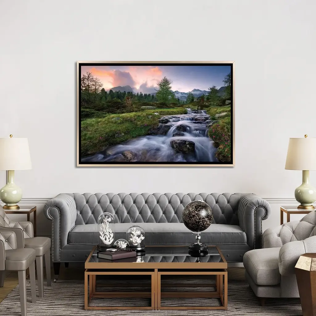 Great Art Deserves to be on Canvas! Unlike thin posters and paper prints, Giclée canvas artwork offers the texture, look and feel of fine-art paintings. This artwork is crafted in the USA with artist-grade canvas, professionally hand-stretched and stapled over North American pine-wood bars in Gallery Wrap style; a method utilized by artists to present artwork in galleries. Your Gallery-Wrapped Canvas comes mounted to a 2 inch thick, elegant hard wood frame. The art is inset, leaving a 3/8" space between the art and frame; creating a "floating" illusion. Fade-resistant archival inks guarantee perfect color reproduction that remains vibrant for decades even when exposed to strong light. Add brilliance in color and exceptional detail to your space with this contemporary and uncompromising style!