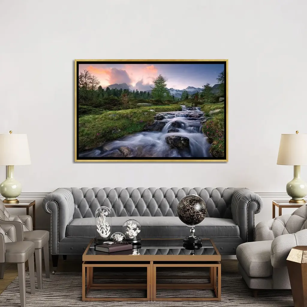 Great Art Deserves to be on Canvas! Unlike thin posters and paper prints, Giclée canvas artwork offers the texture, look and feel of fine-art paintings. This artwork is crafted in the USA with artist-grade canvas, professionally hand-stretched and stapled over North American pine-wood bars in Gallery Wrap style; a method utilized by artists to present artwork in galleries. Your Gallery-Wrapped Canvas comes mounted to a 2 inch thick, elegant hard wood frame. The art is inset, leaving a 3/8" space between the art and frame; creating a "floating" illusion. Fade-resistant archival inks guarantee perfect color reproduction that remains vibrant for decades even when exposed to strong light. Add brilliance in color and exceptional detail to your space with this contemporary and uncompromising style!