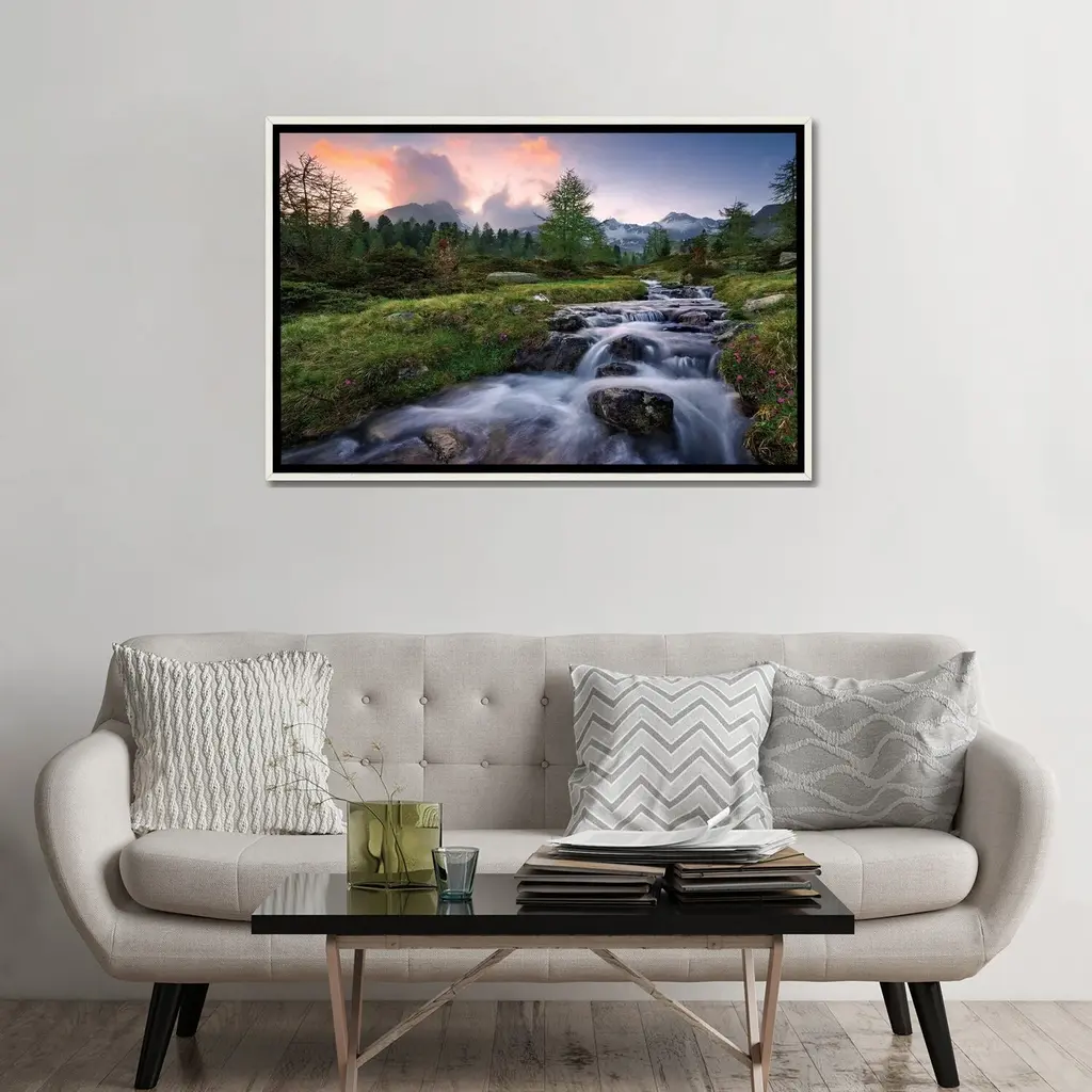 Great Art Deserves to be on Canvas! Unlike thin posters and paper prints, Giclée canvas artwork offers the texture, look and feel of fine-art paintings. This artwork is crafted in the USA with artist-grade canvas, professionally hand-stretched and stapled over North American pine-wood bars in Gallery Wrap style; a method utilized by artists to present artwork in galleries. Your Gallery-Wrapped Canvas comes mounted to a 2 inch thick, elegant hard wood frame. The art is inset, leaving a 3/8" space between the art and frame; creating a "floating" illusion. Fade-resistant archival inks guarantee perfect color reproduction that remains vibrant for decades even when exposed to strong light. Add brilliance in color and exceptional detail to your space with this contemporary and uncompromising style!