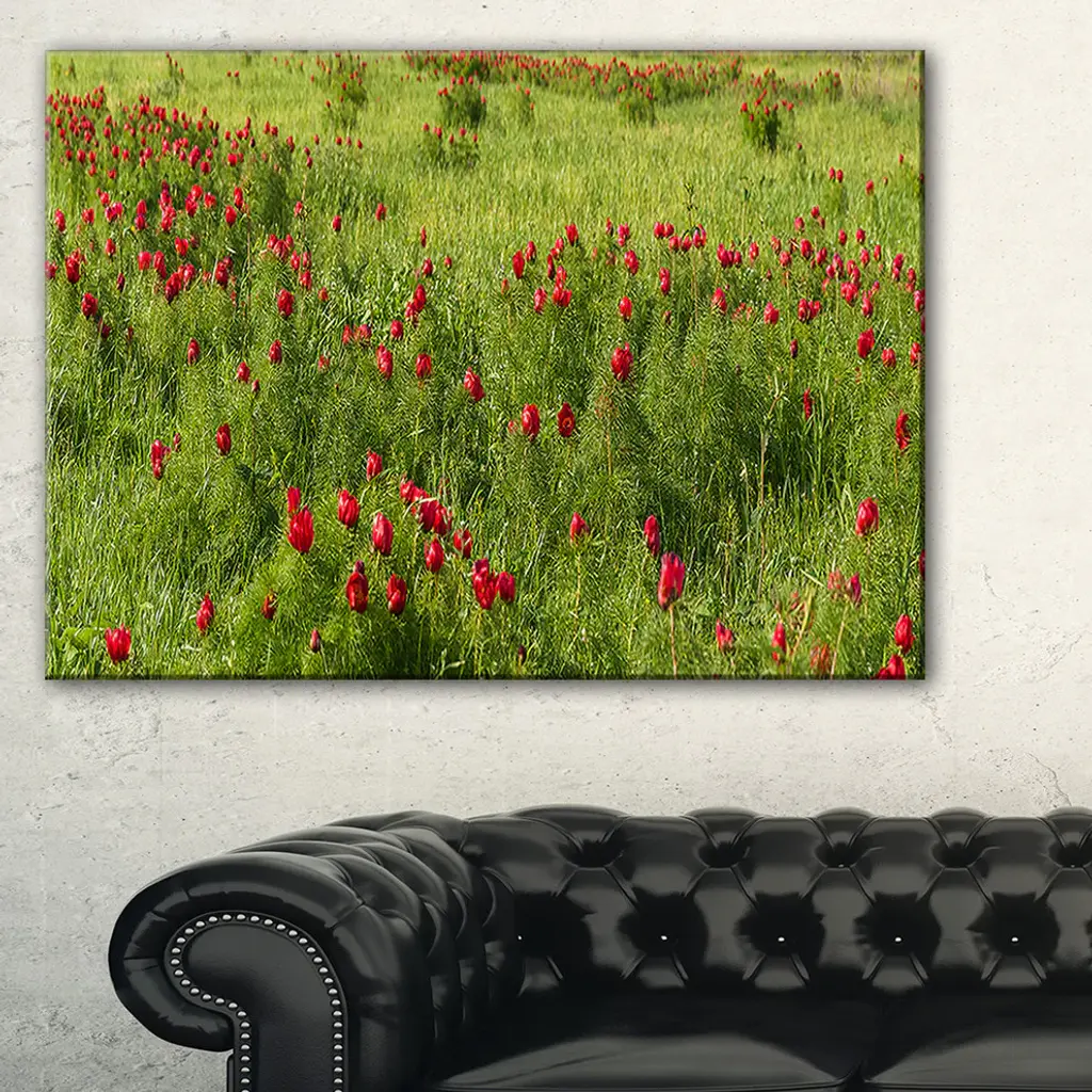 "Wild Peonies Flower In Steppe" Modern Landscape Wall Art, 1 Panel, 60"x28"