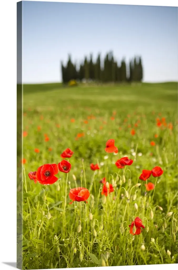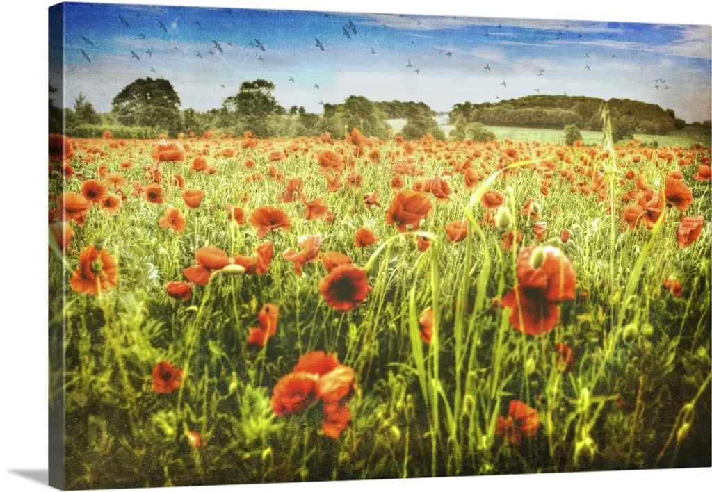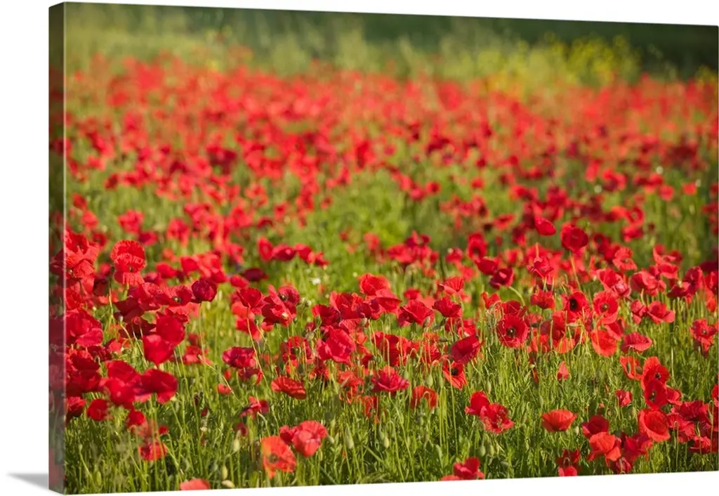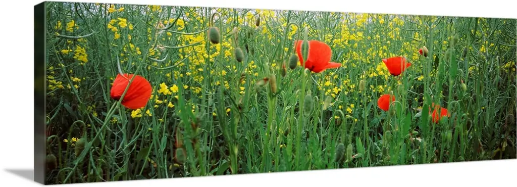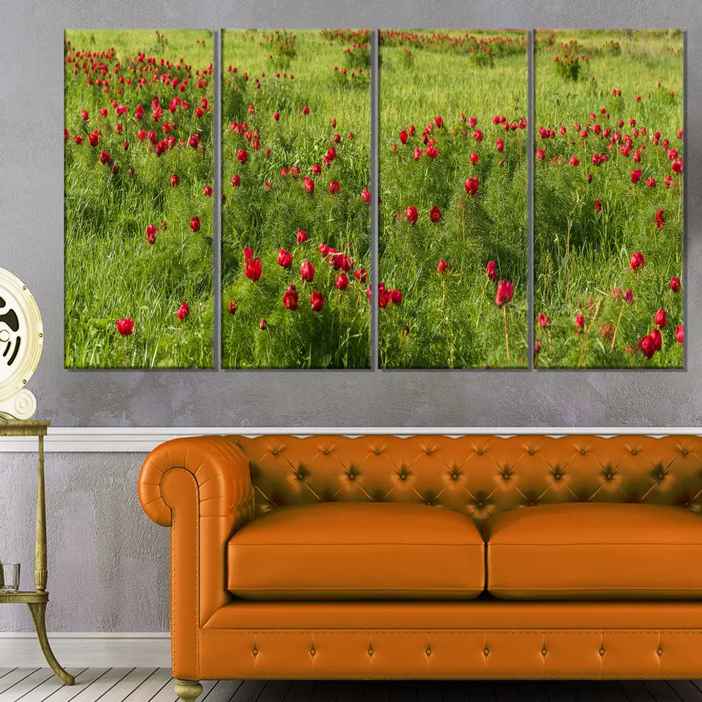 "Wild Peonies Flower In Steppe" Modern Landscape Wall Art, 4 Panels, 48"x28"