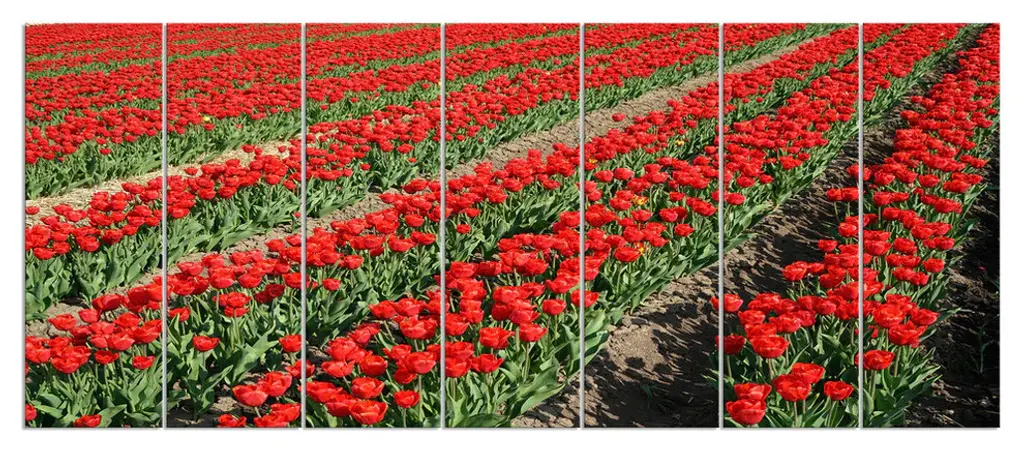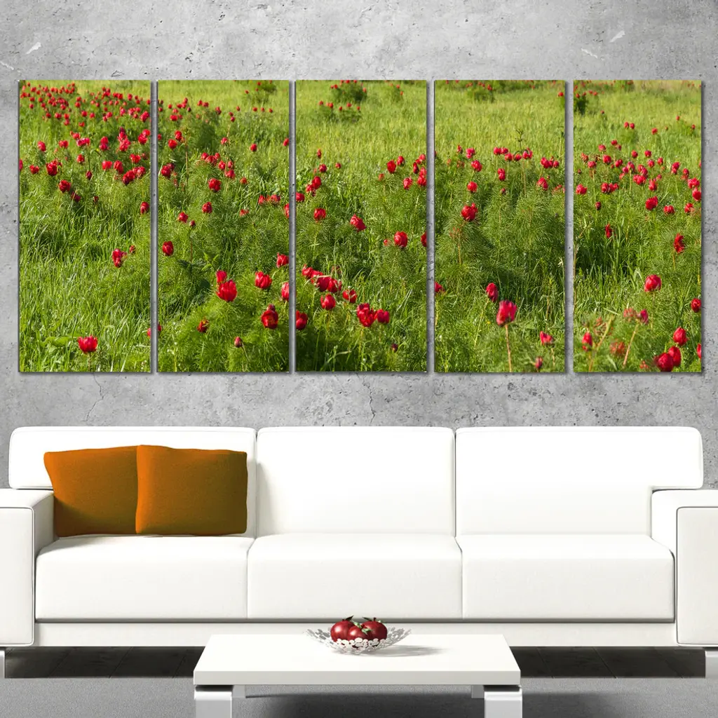 "Wild Peonies Flower In Steppe" Modern Landscape Wall Art, 5 Panels, 60"x28"