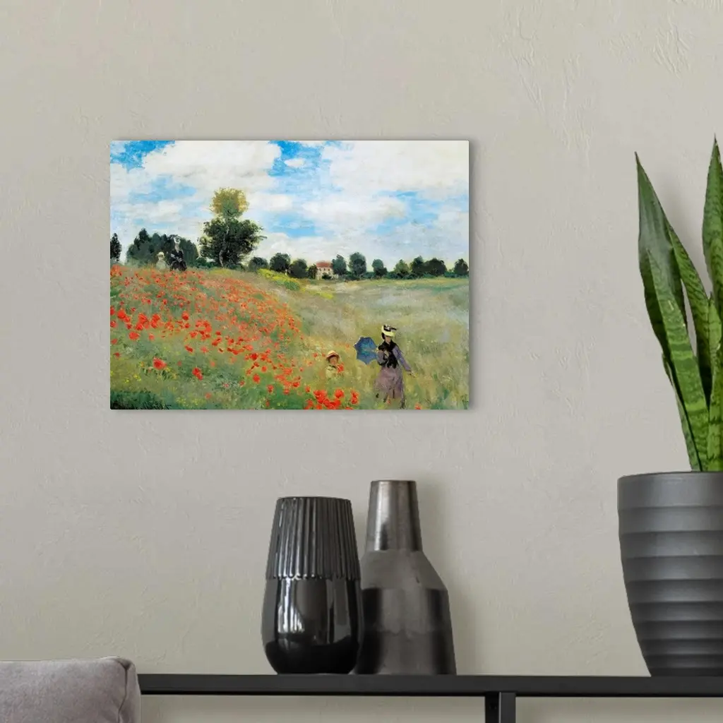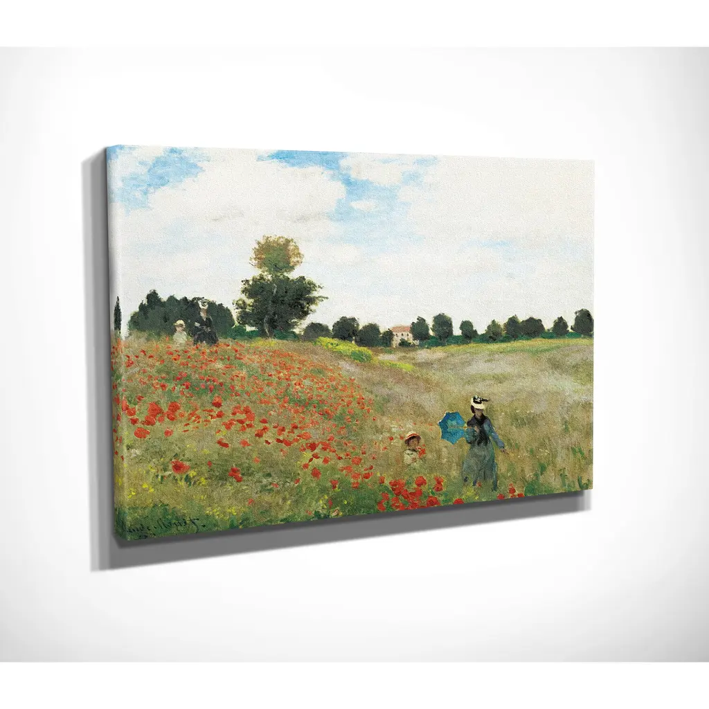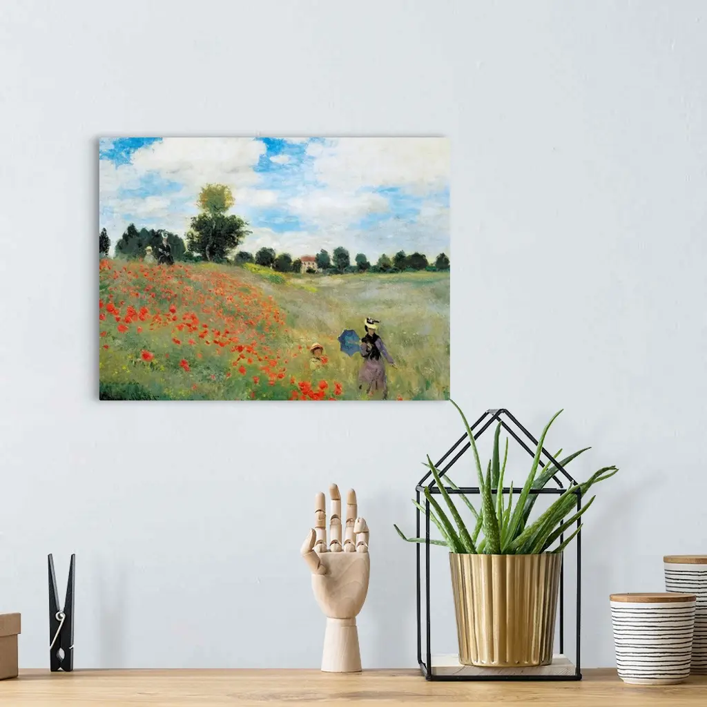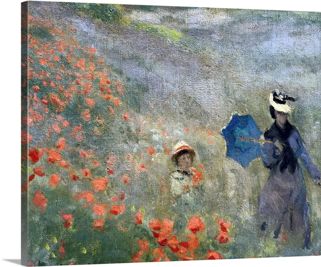 Impressionist painting by Claude Monet of a woman and child in a field of flowers.