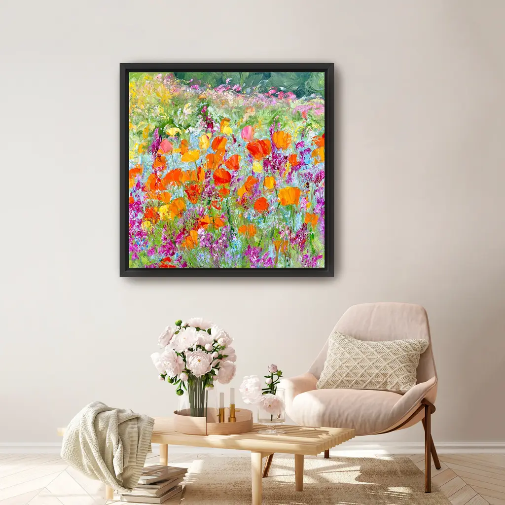 Wild Poppies Canvas Giclee - Framed / Black / 20x20