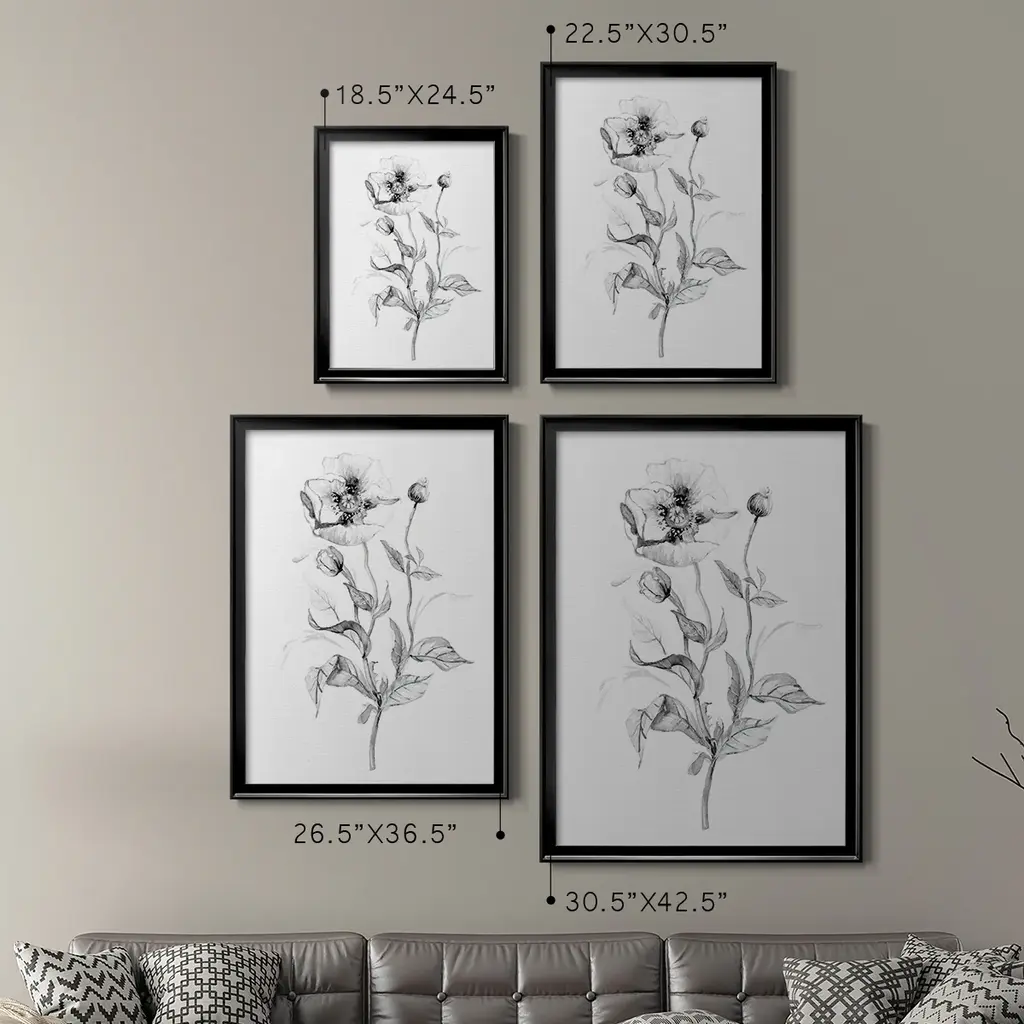 Wild Poppy Sketch Premium Framed Print - Ready to Hang A Premium Framed Print created to last. Framed in distressed wood and available in an array of sizes and colors Featuring a beveled a solid wood stretcher bar, each piece comes ready to hand 4 SIZES AVAILABLE 30.5''X42.5'' - Overall Size 26.5'X36.5'' - Overall Size 22.5''x30.5'' - Overall Size 18.5''x24.5'' - Overall Size Each piece is made to order. Each piece comes with hanging hardware. Made in the USA Ready to Hang