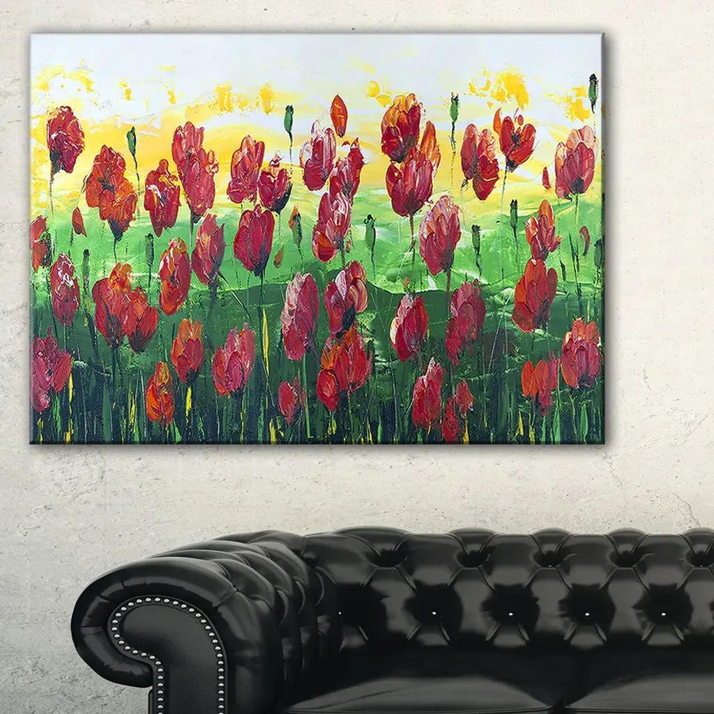 The Wild Red Poppies Field Panorama canvas art print is sure to make an impression on anyone who sees it. This artwork is gallery wrapped around a 1-inch solid wood frame and arrives carefully packaged and entirely ready to hang on the wall. Design Art only uses the highest resolution and pigments to ensure a crisp colorful print that is never faded or pixelated. This artwork is sure to be a conversation starter in any home or office.