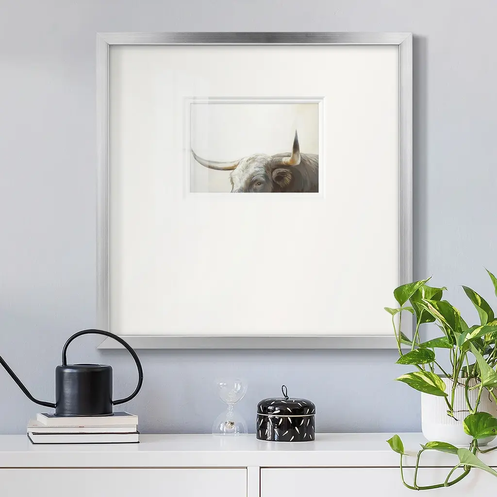 Wild ThingPremium Framed Print A framed cold pressed paper print featuring superior double matting and quality frame. 2 SIZES AVAILABLE 16''X16''' - Overall Size 20''X20''' - Overall Size Each piece is made to order. Each piece comes with hanging hardware. Made in the USA Ready to Hang Giclee Paper Print Plexiglass Beveled Matt Board Double Matte Board