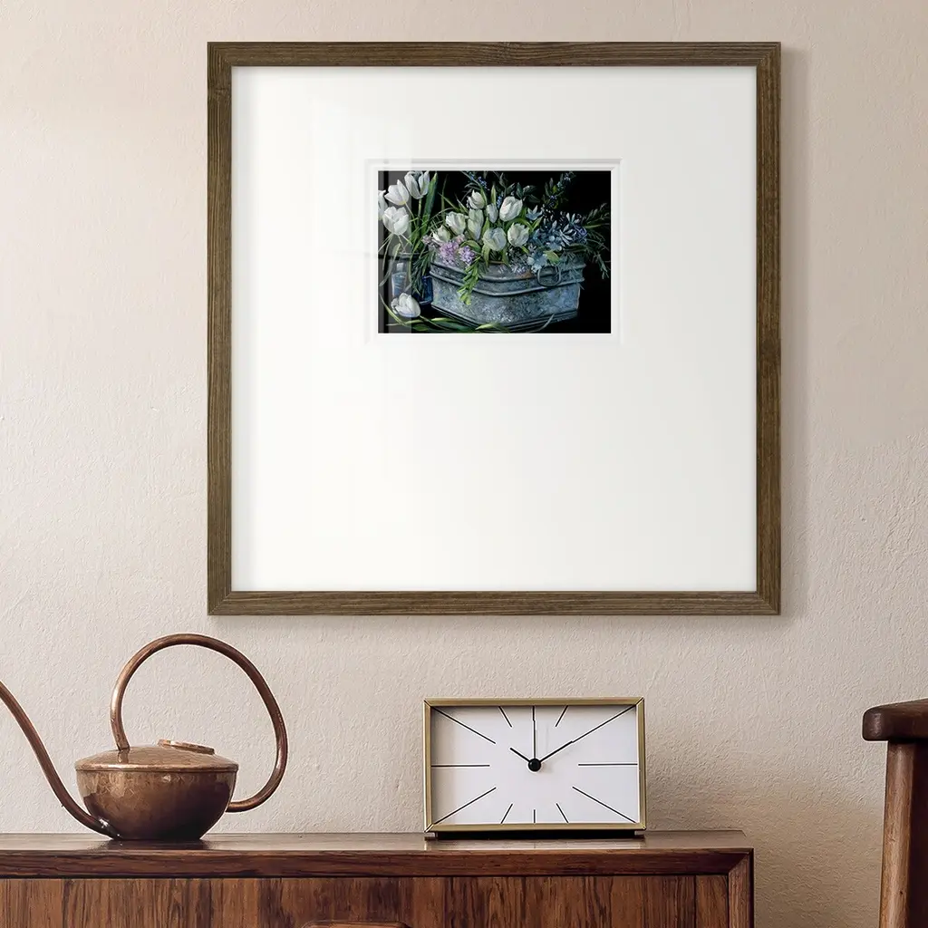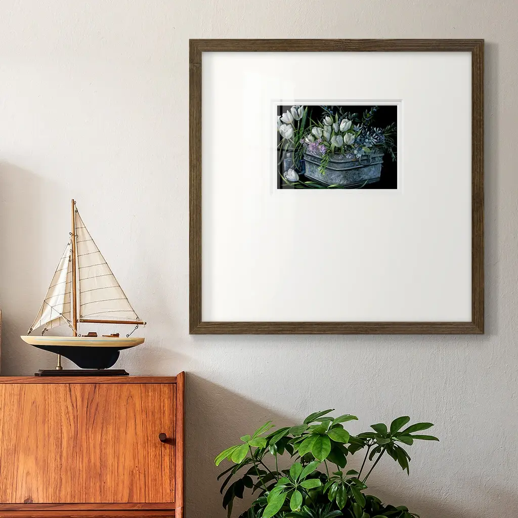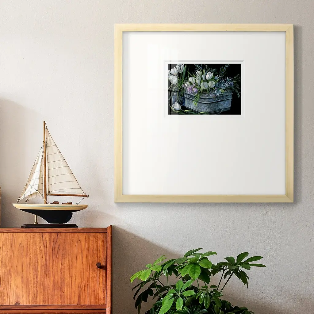 Wild TulipsPremium Framed Print A framed cold pressed paper print featuring superior double matting and quality frame. 2 SIZES AVAILABLE 16''X16''' - Overall Size 20''X20''' - Overall Size Each piece is made to order. Each piece comes with hanging hardware. Made in the USA Ready to Hang Giclee Paper Print Plexiglass Beveled Matt Board Double Matte Board