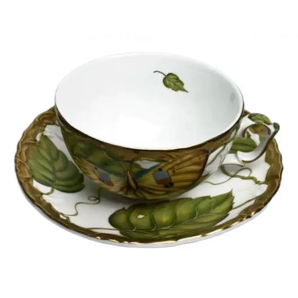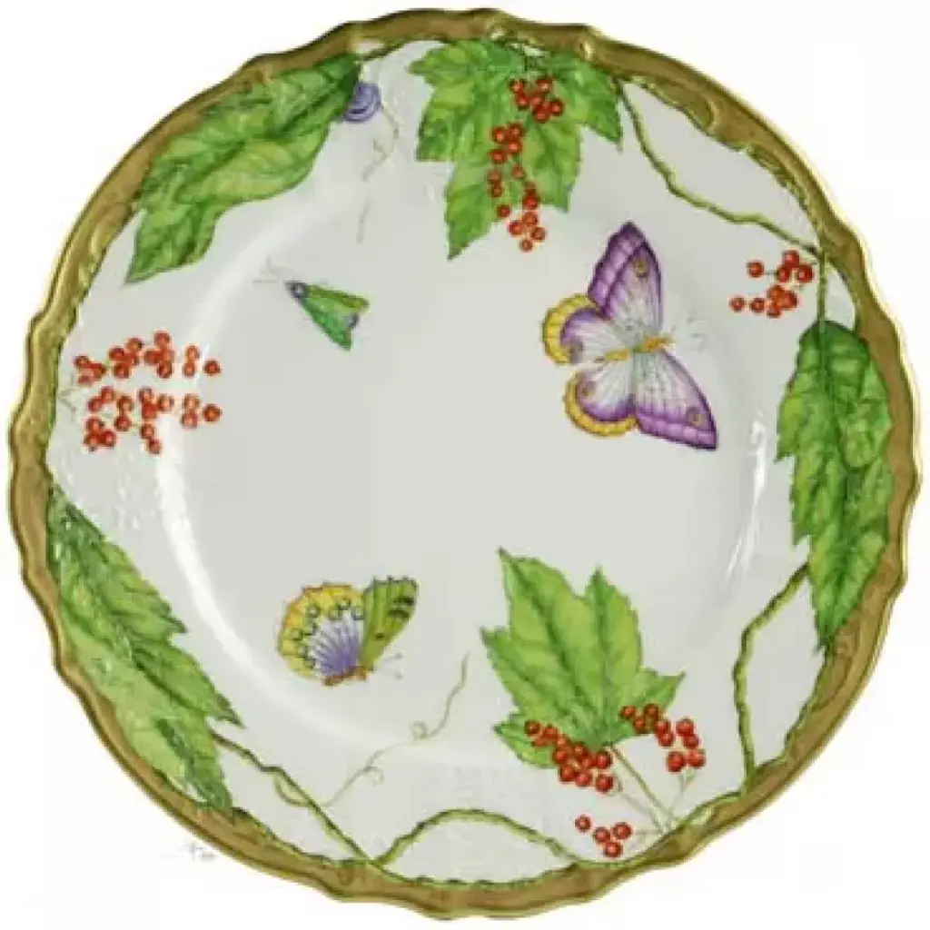 With a sweet mix of berries, butterflies, and green leaves, Wildberries dinnerware is vibrant and fresh. Raised relief and edged in gold. Available with lavender berries or red berries. Five piece place setting includes dinner plate, dessert plate, bread & butter plate, tea cup and saucer. Anna Weatherley’s designs are based on botanical sketches from the 18th century as well as Dutch still-life paintings. At home, we find her pieces look just as good on our tables as they do on our walls. Fashion designer, socialite, and artist Anna Weatherley's signature style of butterflies, flowers, and botanical drawings is brought by artists in her factory in Budapest, Hungary. There, they hand-paint and decorate each piece to create a unique work of art that brings beauty to your home all year.