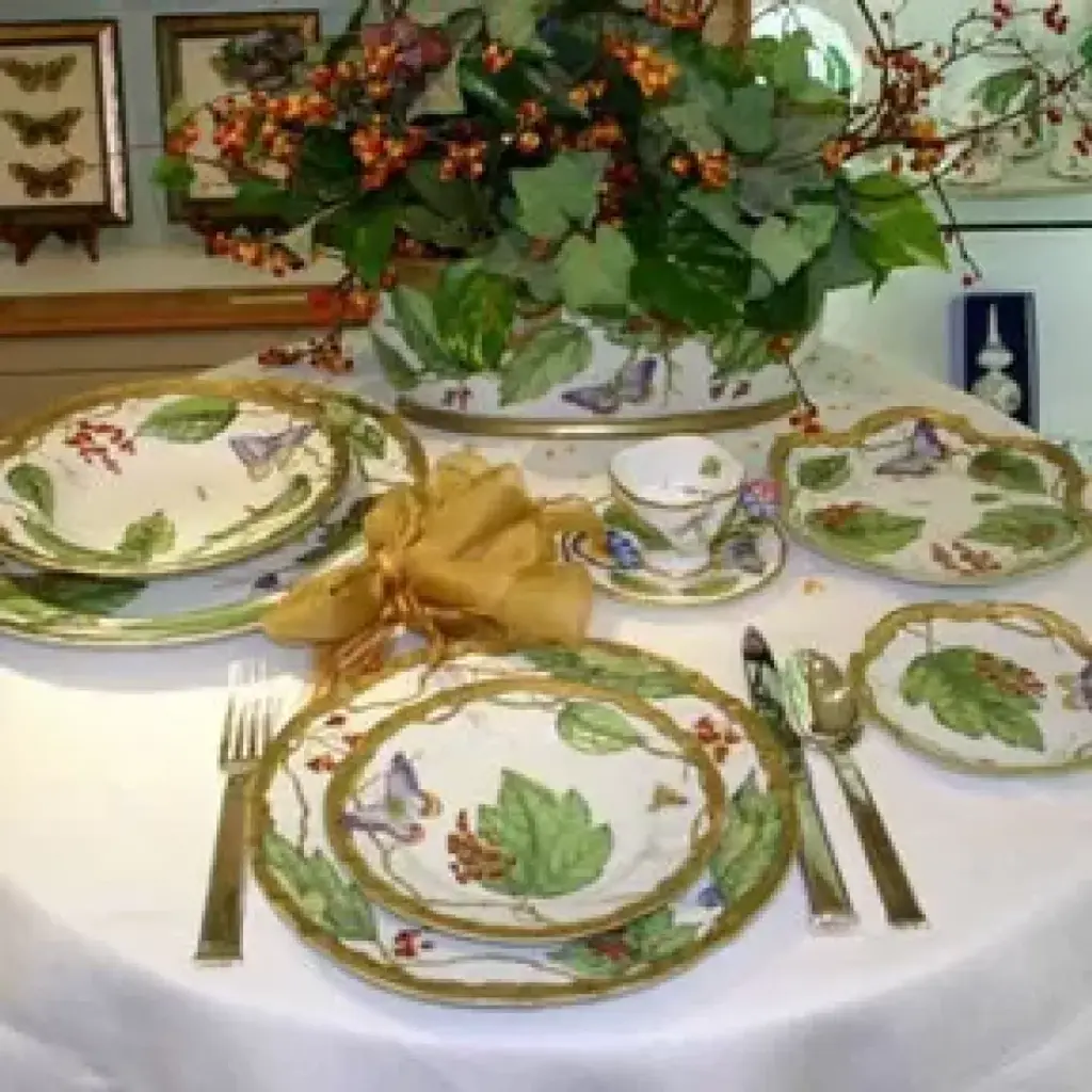 With a sweet mix of berries, butterflies, and green leaves, Wildberries dinnerware is vibrant and fresh. Raised relief and edged in gold. Available with lavender berries or red berries. Five piece place setting includes dinner plate, dessert plate, bread & butter plate, tea cup and saucer. Anna Weatherley’s designs are based on botanical sketches from the 18th century as well as Dutch still-life paintings. At home, we find her pieces look just as good on our tables as they do on our walls. Fashion designer, socialite, and artist Anna Weatherley's signature style of butterflies, flowers, and botanical drawings is brought by artists in her factory in Budapest, Hungary. There, they hand-paint and decorate each piece to create a unique work of art that brings beauty to your home all year.