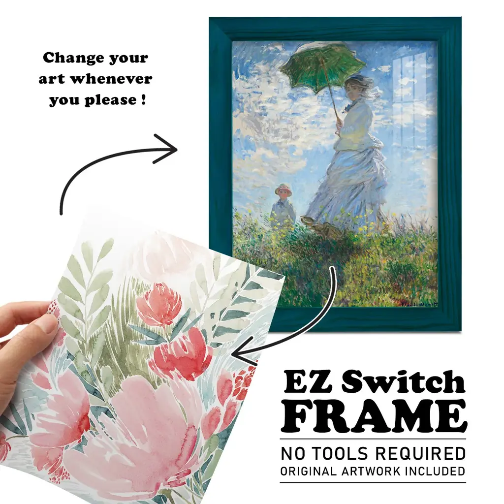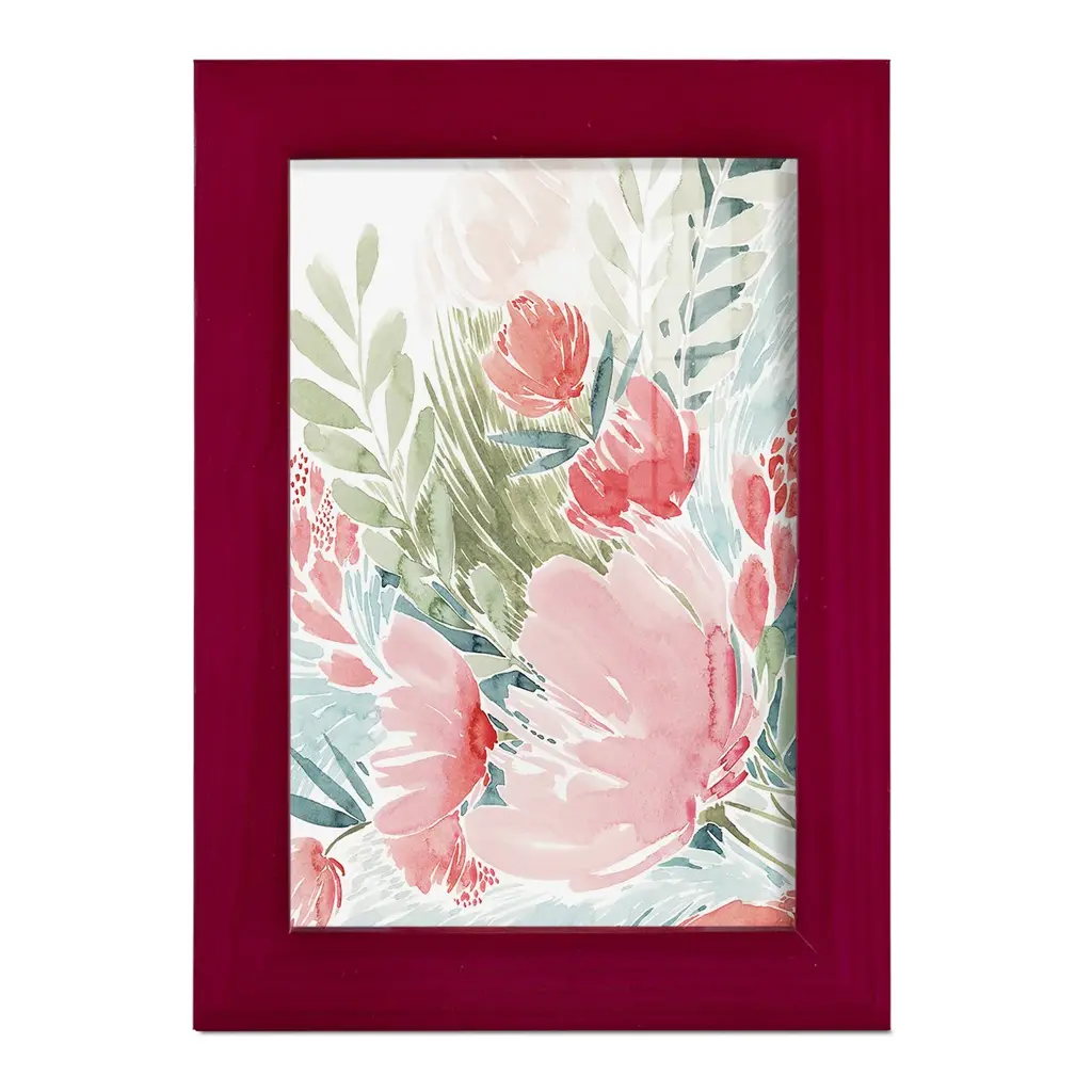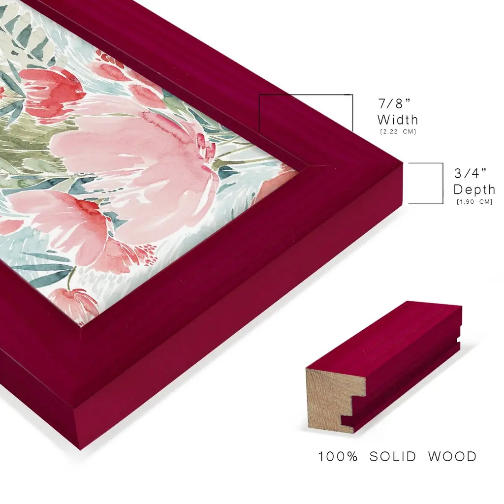Wilder Bouquet II -EZ SWITCH Framed Print w/glass-Cherry Red A delightful, framed print. Featuring a solid wood frame with real wood glass. This premium print is giclee quality. In addition, every frame features a removable back and table top stand. This allows you to change your art in the future or to just stand the art on a table for a new look. We are sure you'll enjoy our new series of EZ SWITCH Framed Art. Solid Wood Frame Real Glass Removable / Replaceable Art Built in Tabletop Stand Sizes range from 4x6 up to 12x15 - buy just one or pair them up as sets as you see fit.