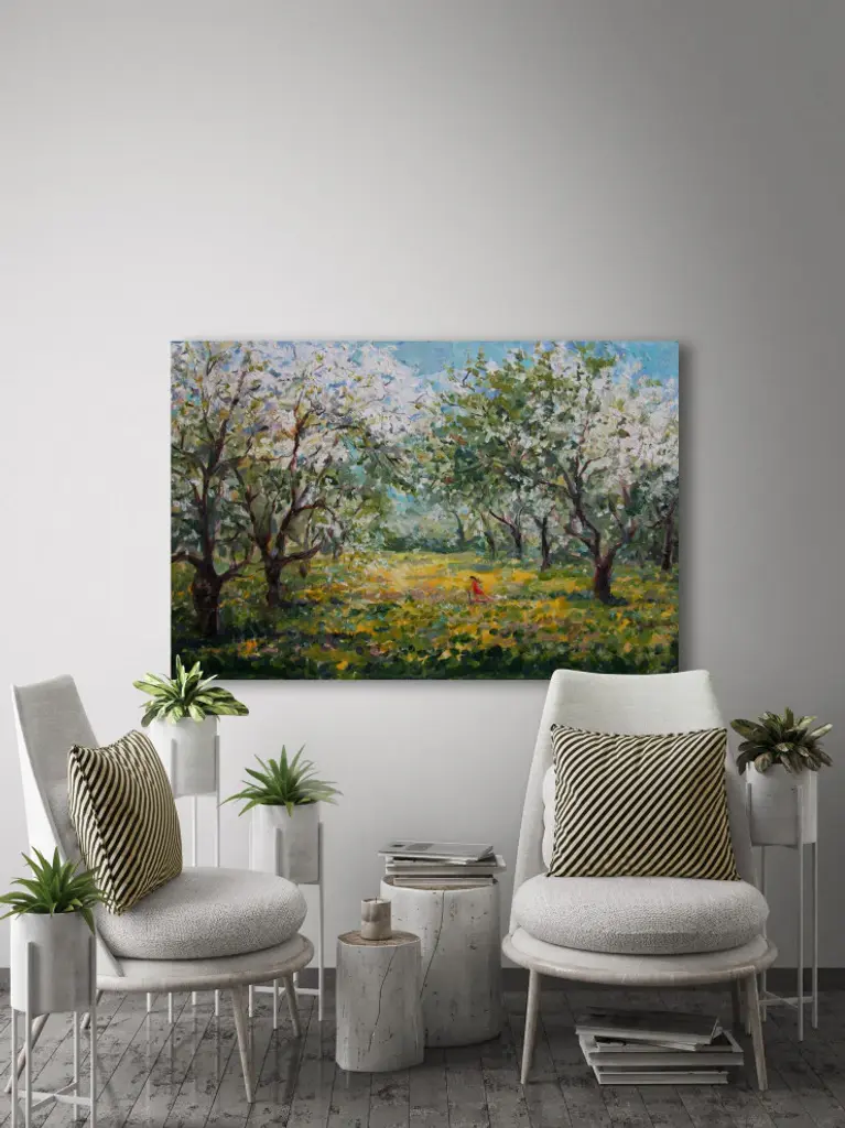 "Wildflower And Trees" Painting Print On Wrapped Canvas, 12x8