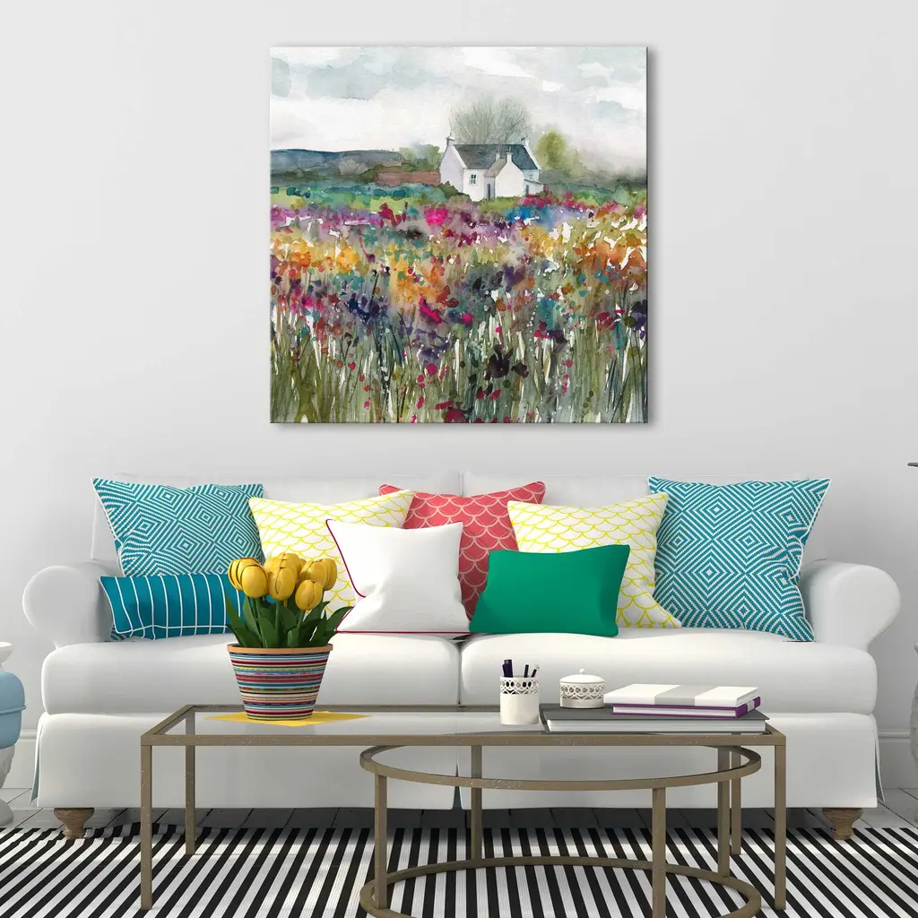 "Wildflower Cottage" By Carol Robinson Print On Canvas - 24 X 24