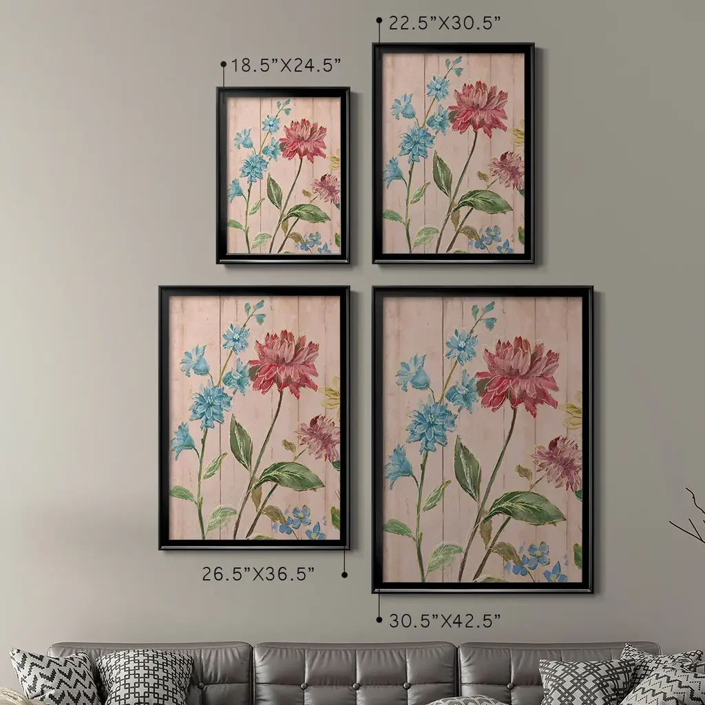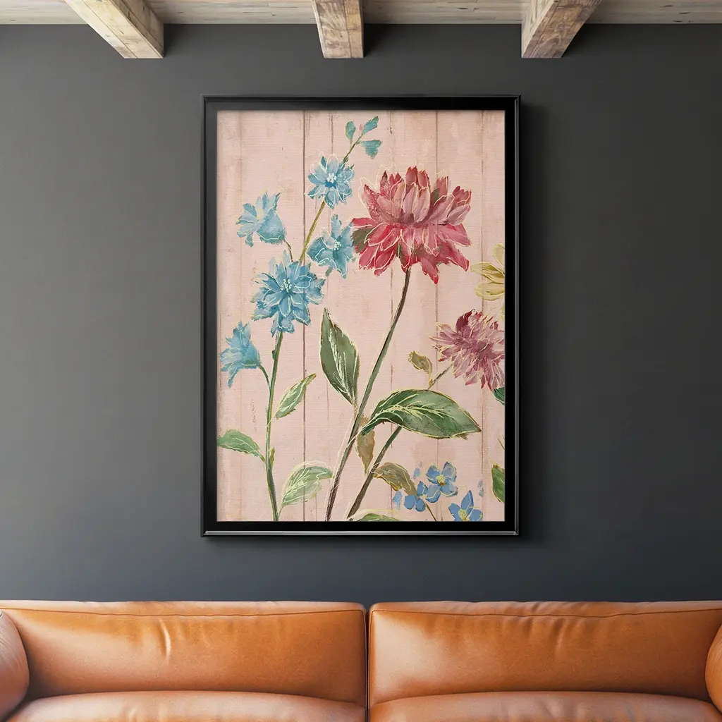 Wildflower Flutter I Premium Framed Print - Ready to Hang A Premium Framed Print created to last. Framed in distressed wood and available in an array of sizes and colors Featuring a beveled a solid wood stretcher bar, each piece comes ready to hand 4 SIZES AVAILABLE 30.5''X42.5'' - Overall Size 26.5'X36.5'' - Overall Size 22.5''x30.5'' - Overall Size 18.5''x24.5'' - Overall Size Each piece is made to order. Each piece comes with hanging hardware. Made in the USA Ready to Hang