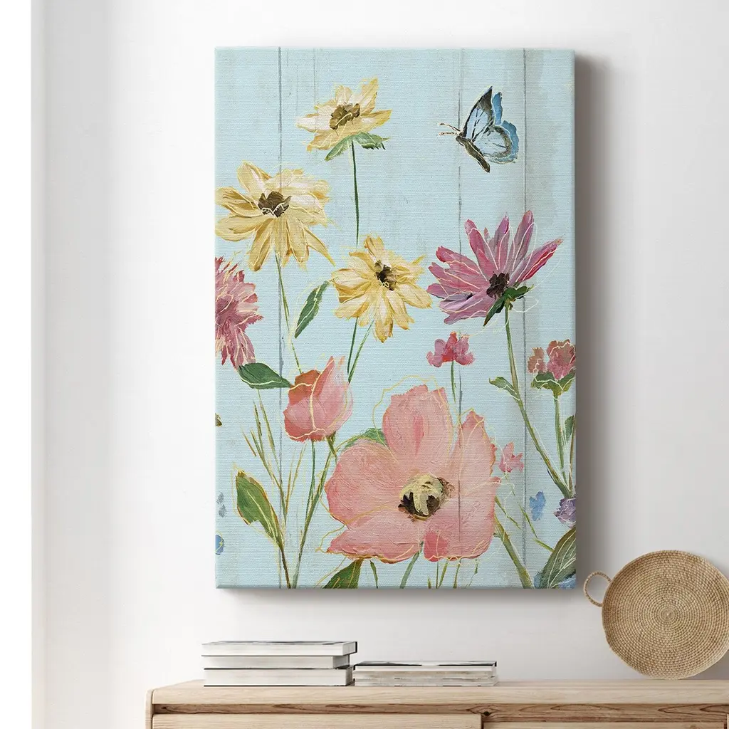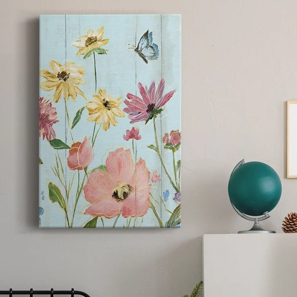 Wildflower Flutter II Premium Gallery Wrapped Canvas - Ready to Hang A premium hand stretched gallery wrapped canvas print created to last. Featuring a beveled a solid wood stretcher bar, each piece comes ready to hand 6 SIZES AVAILABLE 8''X12'' - Overall Size 12''X18'' - Overall Size 18''X27'' - Overall Size 24''x36'' - Overall Size 32''x48'' - Overall Size 40''x60'' - Overall Size Each piece is made to order. Built to Last Each piece comes ready to hang Solid wood stretcher Fade and Water resistant Made domestically