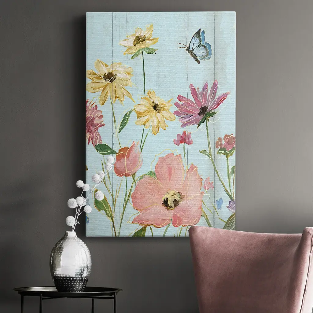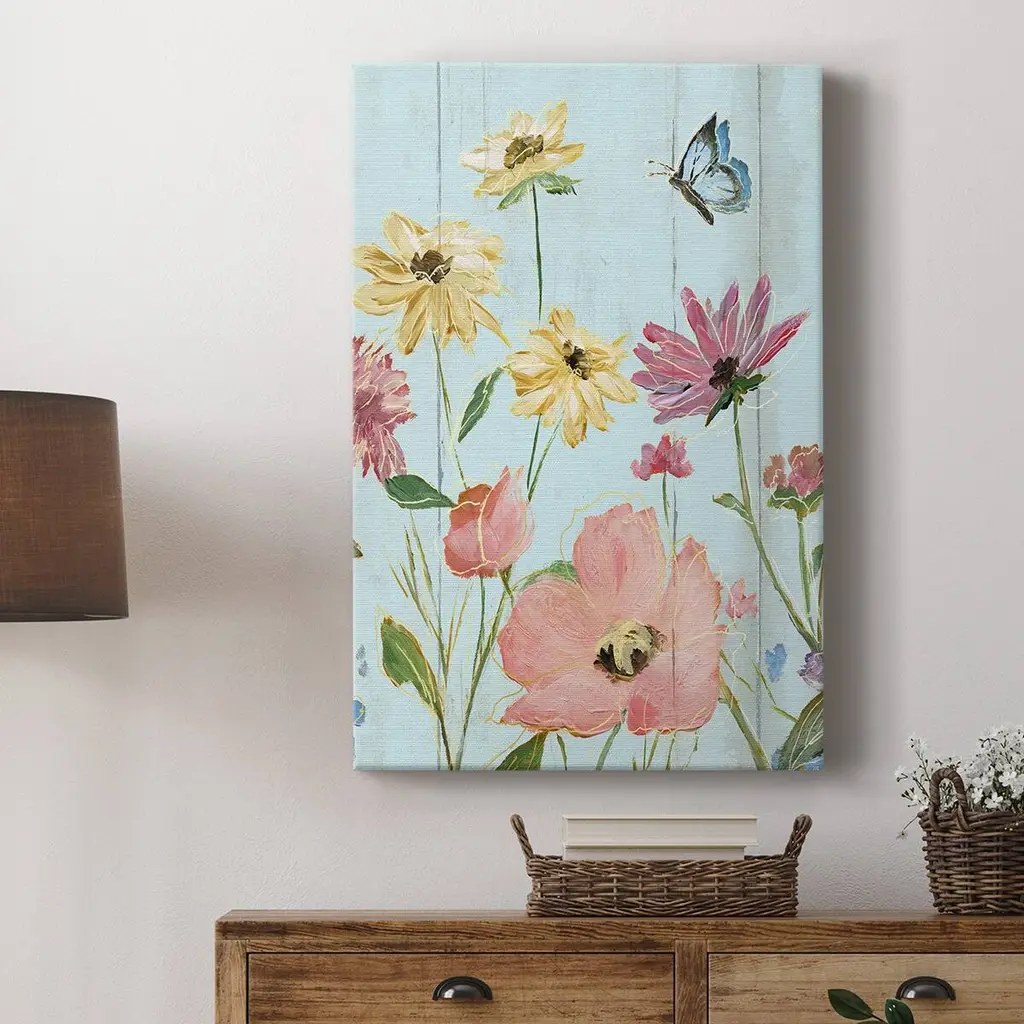 Wildflower Flutter II Premium Gallery Wrapped Canvas - Ready to Hang A premium hand stretched gallery wrapped canvas print created to last. Featuring a beveled a solid wood stretcher bar, each piece comes ready to hand 6 SIZES AVAILABLE 8''X12'' - Overall Size 12''X18'' - Overall Size 18''X27'' - Overall Size 24''x36'' - Overall Size 32''x48'' - Overall Size 40''x60'' - Overall Size Each piece is made to order. Built to Last Each piece comes ready to hang Solid wood stretcher Fade and Water resistant Made domestically