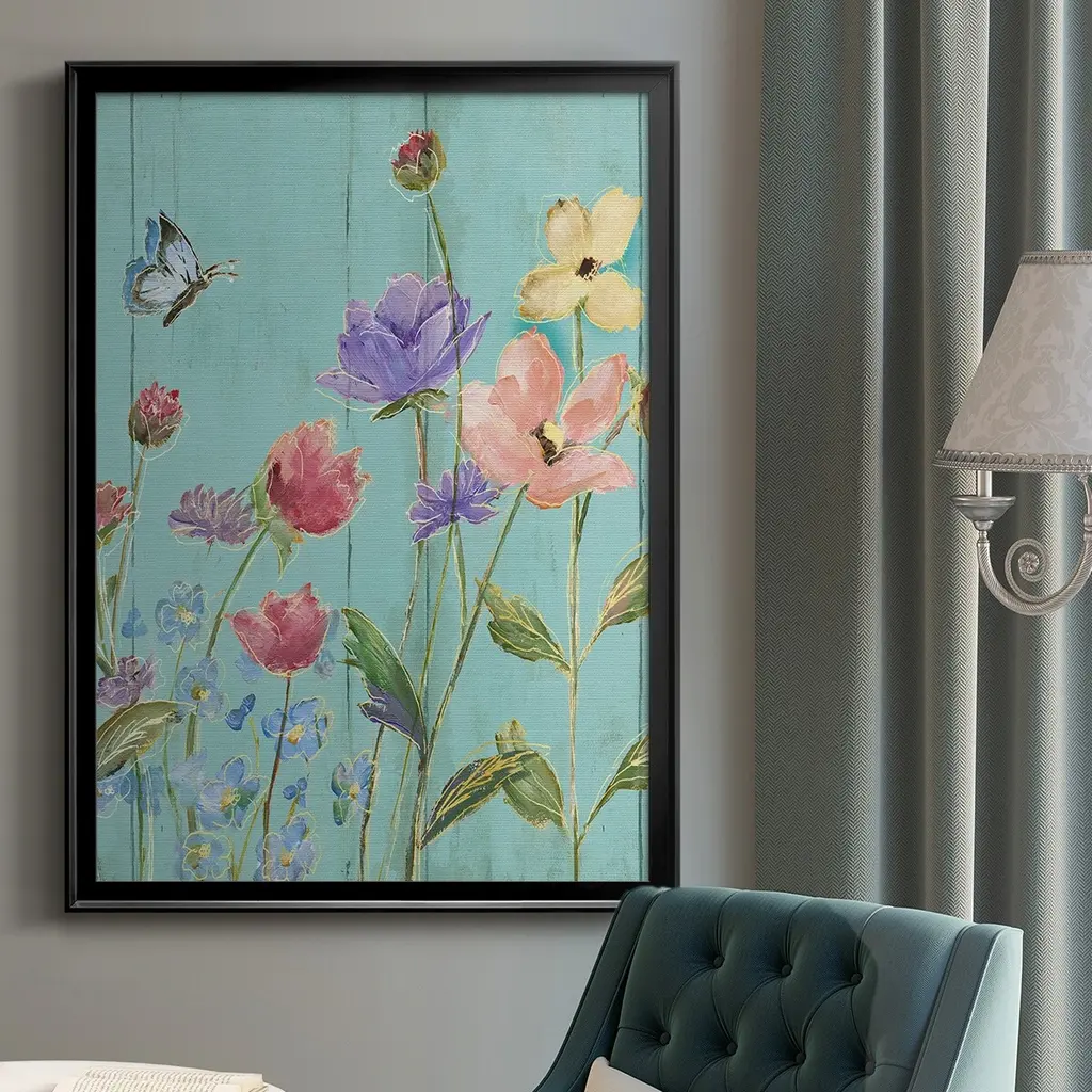 Wildflower Flutter III Premium Framed Print - Ready to Hang A Premium Framed Print created to last. Framed in distressed wood and available in an array of sizes and colors Featuring a beveled a solid wood stretcher bar, each piece comes ready to hand 4 SIZES AVAILABLE 30.5''X42.5'' - Overall Size 26.5'X36.5'' - Overall Size 22.5''x30.5'' - Overall Size 18.5''x24.5'' - Overall Size Each piece is made to order. Each piece comes with hanging hardware. Made in the USA Ready to Hang