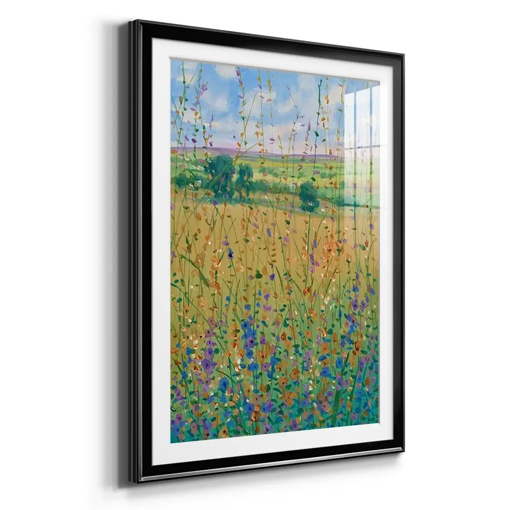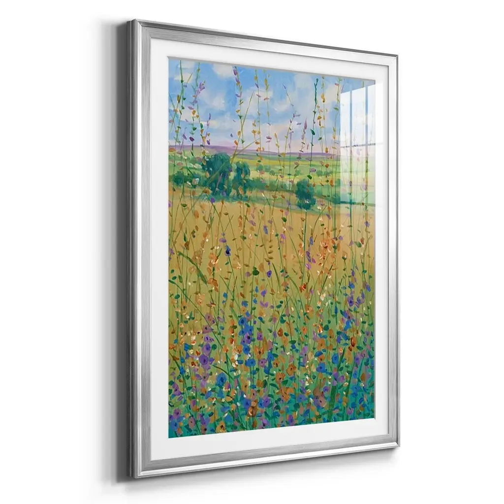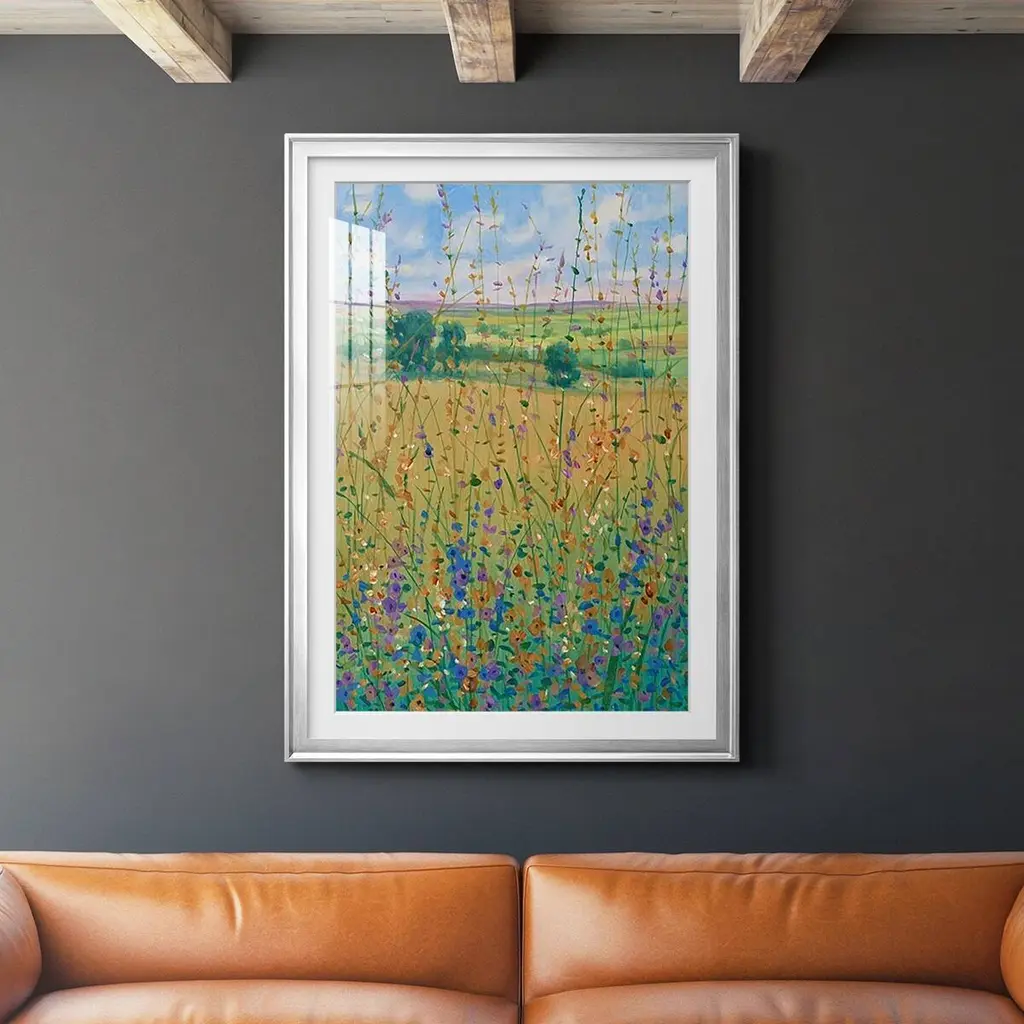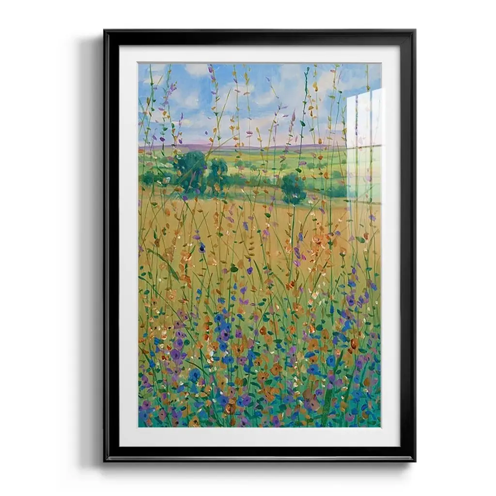 Wildflower Path I Premium Framed Print - Ready to Hang A Premium Framed Print created to last. Framed in distressed wood and available in an array of sizes and colors Featuring a beveled a solid wood stretcher bar, each piece comes ready to hand 4 SIZES AVAILABLE 30.5''X42.5'' - Overall Size 26.5'X36.5'' - Overall Size 22.5''x30.5'' - Overall Size 18.5''x24.5'' - Overall Size Each piece is made to order. Each piece comes with hanging hardware. Made in the USA Ready to Hang Giclee Paper Print Acrylic Glass Beveled Matt Board
