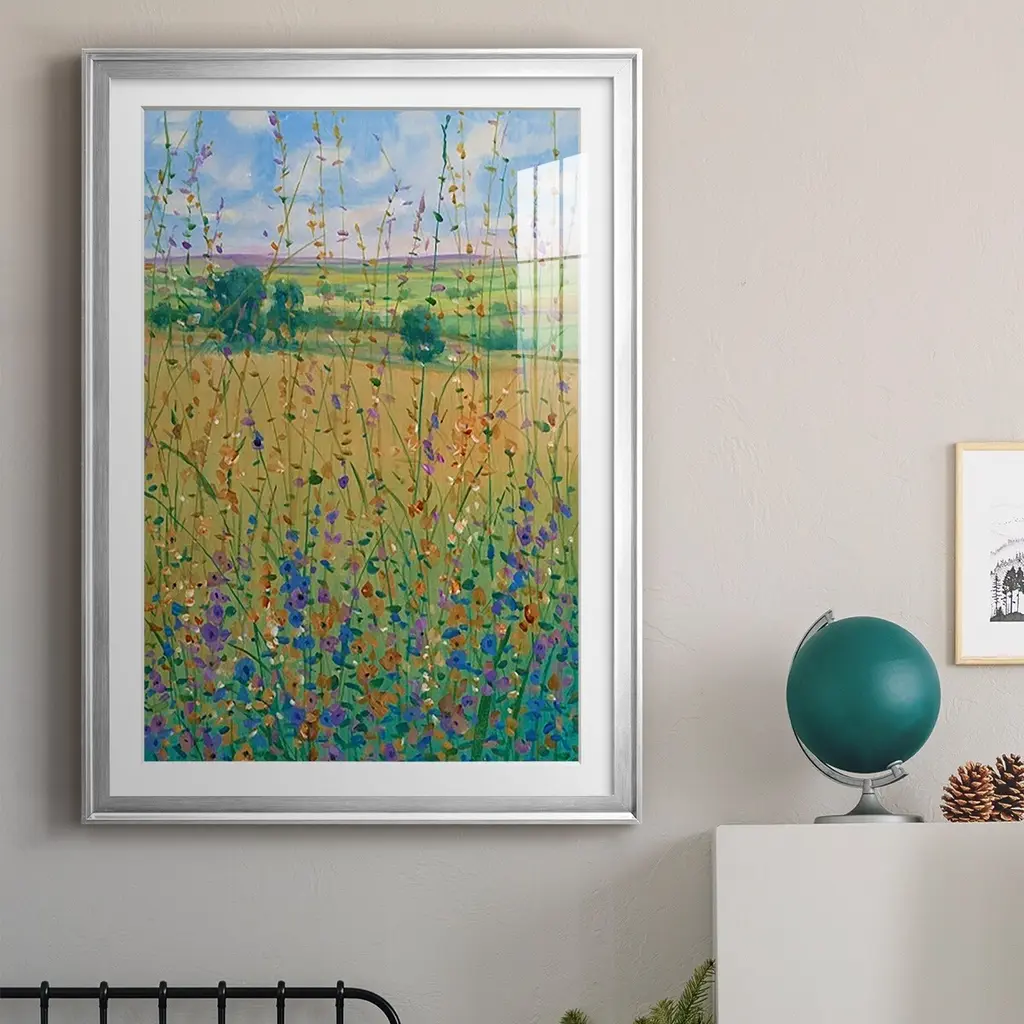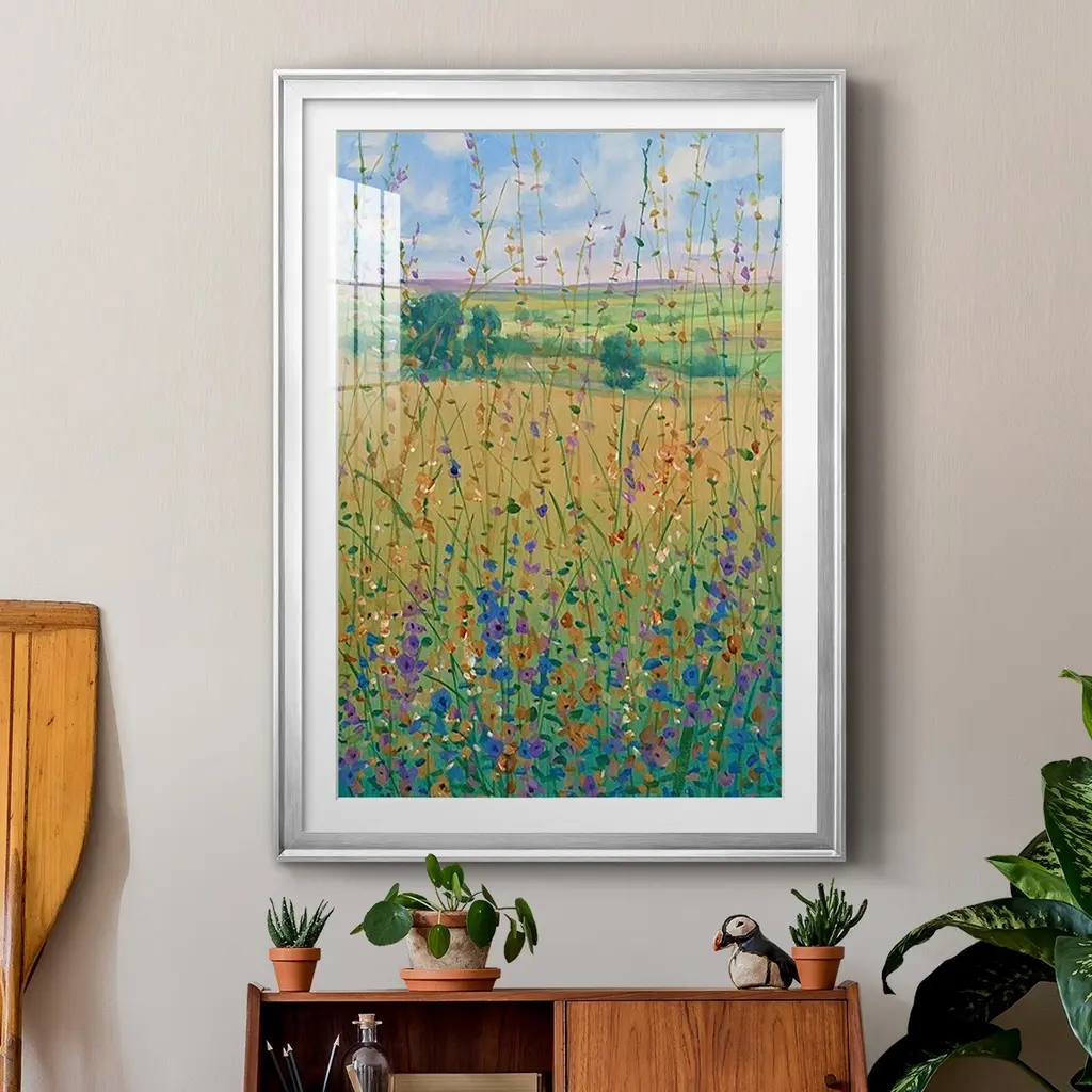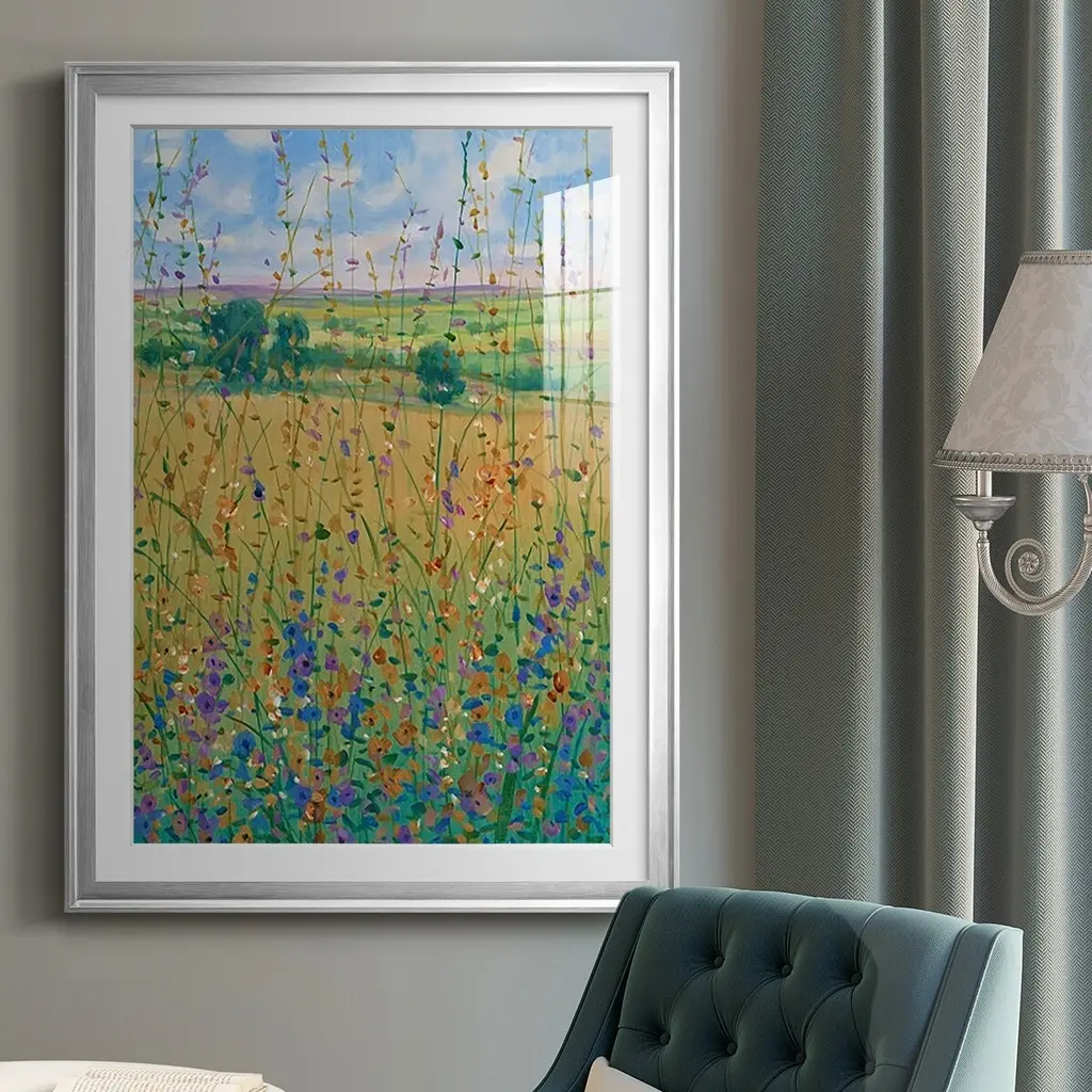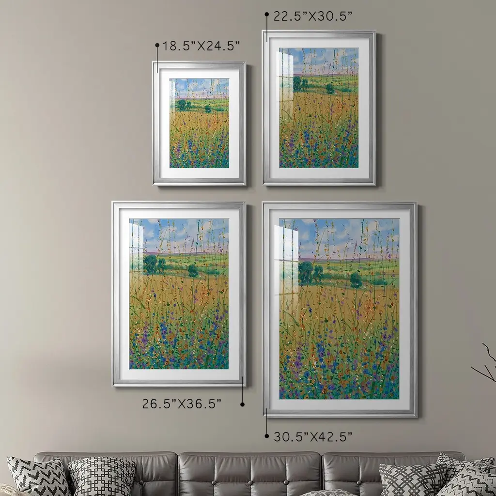 Wildflower Path I Premium Framed Print - Ready to Hang A Premium Framed Print created to last. Framed in distressed wood and available in an array of sizes and colors Featuring a beveled a solid wood stretcher bar, each piece comes ready to hand 4 SIZES AVAILABLE 30.5''X42.5'' - Overall Size 26.5'X36.5'' - Overall Size 22.5''x30.5'' - Overall Size 18.5''x24.5'' - Overall Size Each piece is made to order. Each piece comes with hanging hardware. Made in the USA Ready to Hang Giclee Paper Print Acrylic Glass Beveled Matt Board